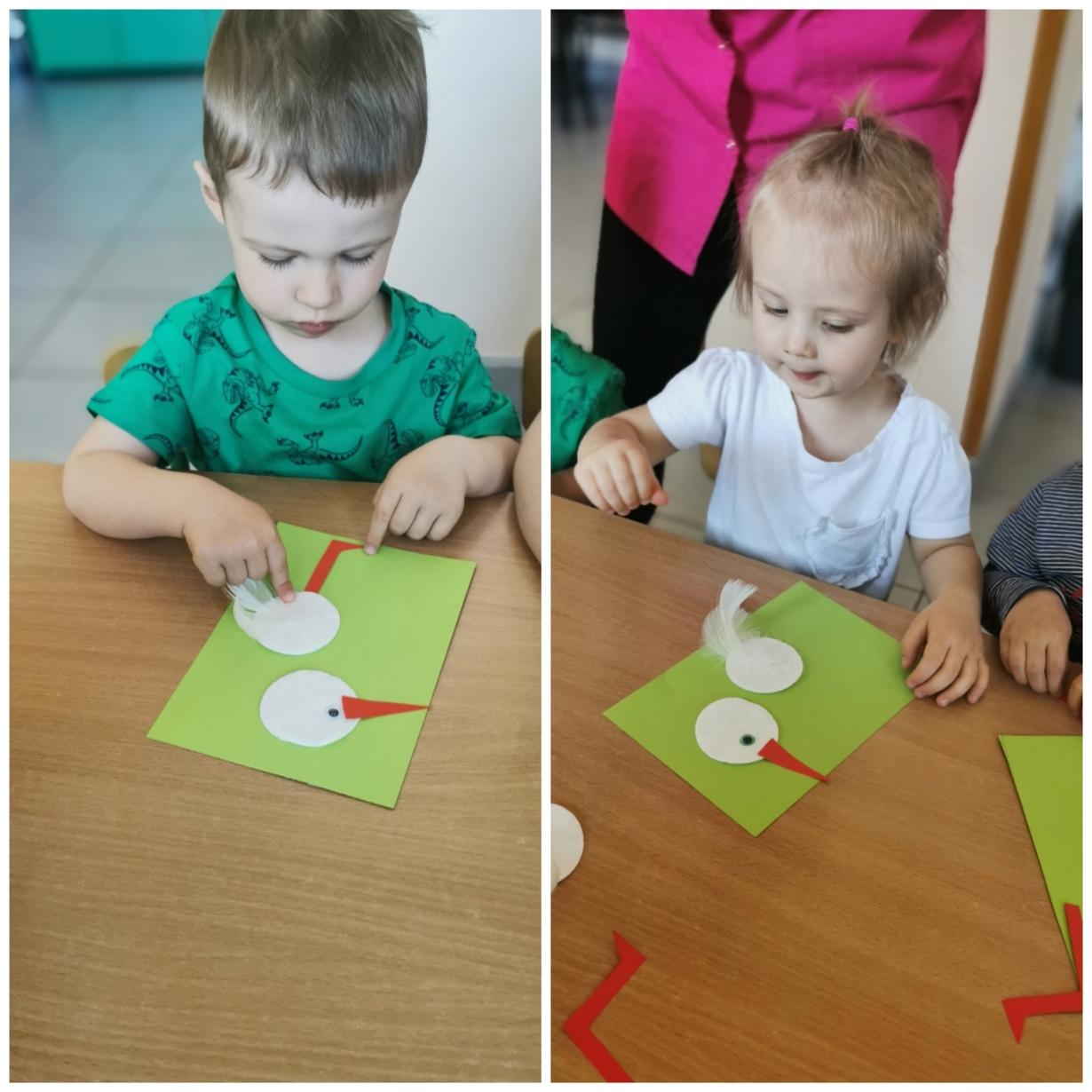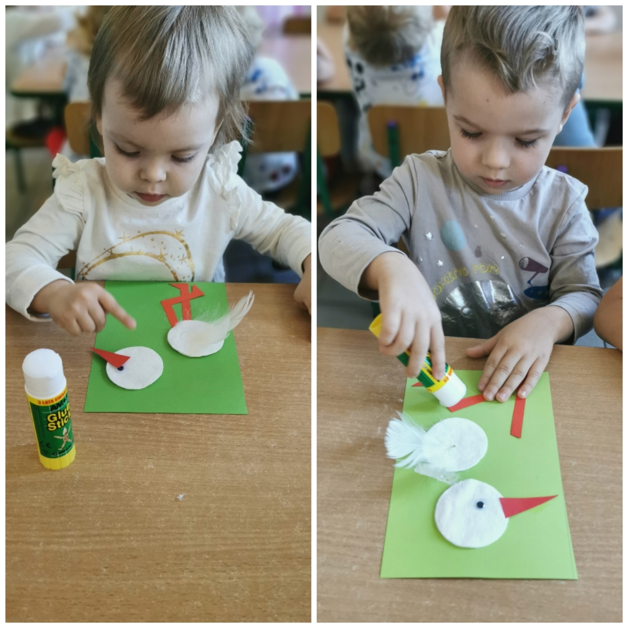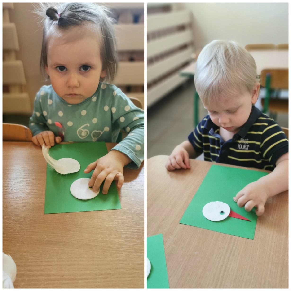Biedronki posiadają niezwykły talent artystyczny, który można podziwiać od dłuższego czasu. Kolejnymi pracami, jakie mieliśmy przyjemność wykonać były bociany, które przyniosły ze sobą dużo słońca i pogody ducha. Wykonane zostały przy użyciu płatków kosmetycznych, piórek, kolorowych oczek i kolorowego papieru. Efekty można podziwiać na zdjęciach.