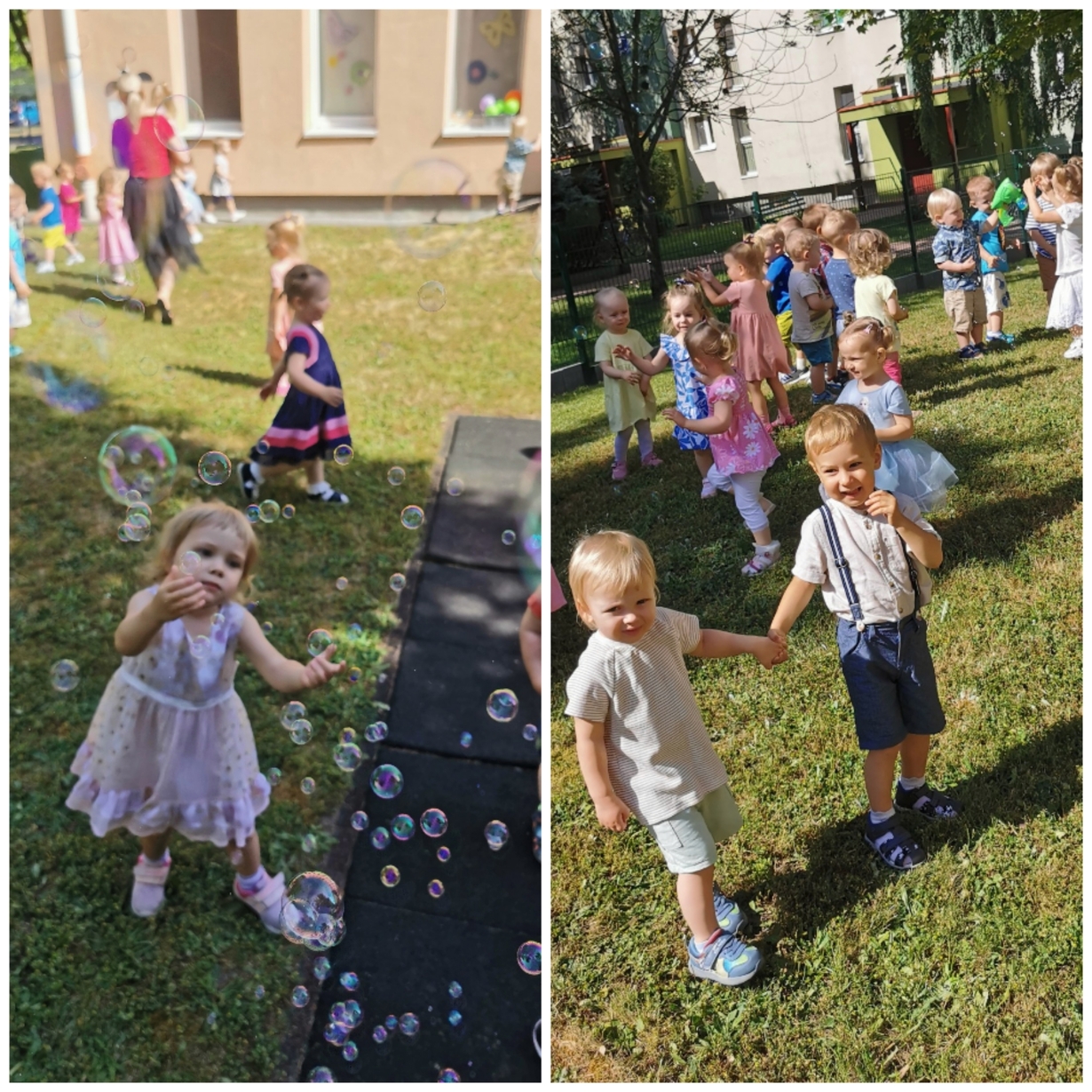 Dzień Dziecka to dzień wyjątkowy dla każdego, dla dużego i małego. To dzień pełen zabawy, niespodzianek, radości i niesamowitych wrażeń. Dzisiaj także Biedronki świętowały na całego, bawiąc się i tańcząc. Były tańce indywidualne, w parach, w kółku, a wszystko to przy ulubionych dziecięcych przebojach. Wiele frajdy dało nam łapanie kolorowych baniek, a także zabawy z kolorową klanzą. Do atrakcji, które czekały na naszych podopiecznych należały także malowanie buziek, granie w piłkę i korzystanie ze żłobkowego placu zabaw. Na koniec tego fantastycznego dnia każdy milusiński otrzymał prezent, który zabrał do domu.