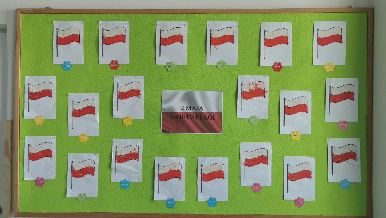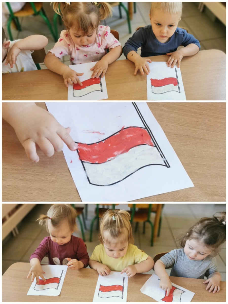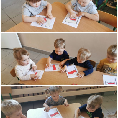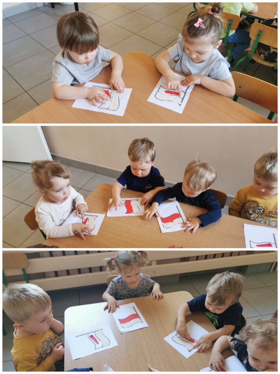 Zbliża się "majówka", a co się z tym wiąże obchody Świąt Narodowych - Święto Flagi oraz Konstytucji 3 maja. Budowanie świadomości narodowej oraz przywiązania do Ojczyzny jest ważne na każdym etapie życia, tak więc i nasze małe Biedroneczki postanowiły uczcić te ważne dla Polski dni. Z tej okazji wykonaliśmy prace plastyczne, przedstawiające symbol narodowy jakim jest Flaga Polski. W tym celu wykorzystalismy plastelinę, którą dzieci rozcierały paluszkami na kartce, tworząc flagę w biało - czerwonej barwie. Piękne prace zobaczyć można na naszej tablicy, jak również w galerii zdjęć.