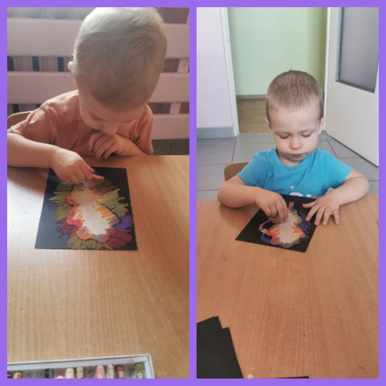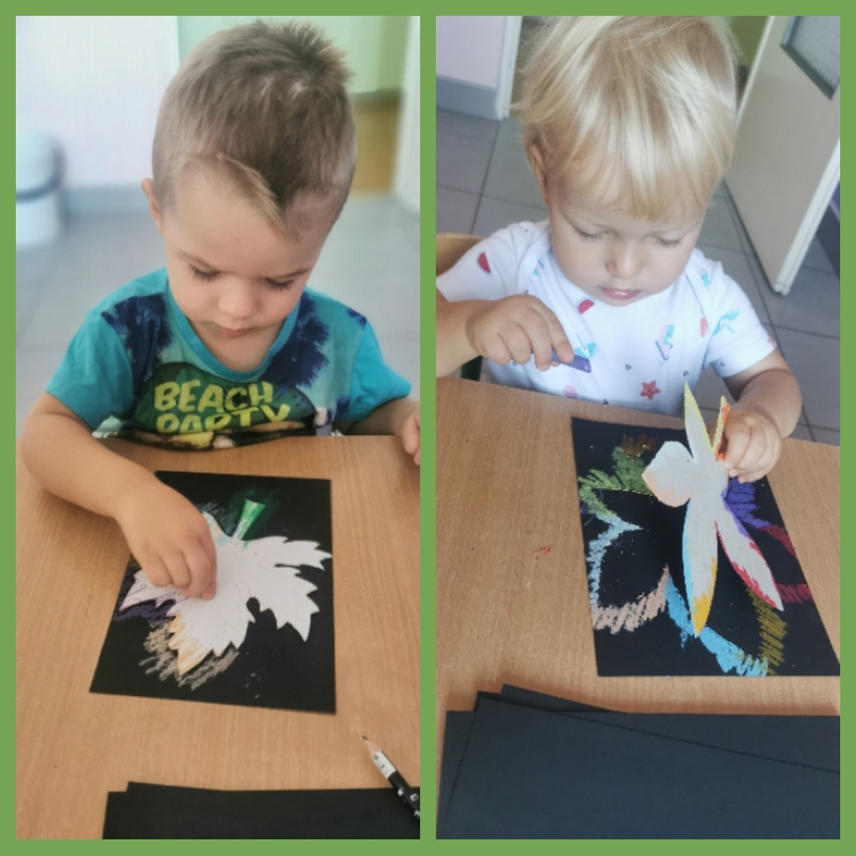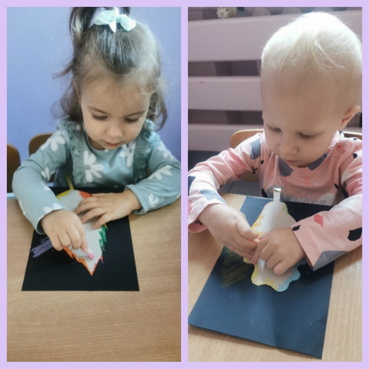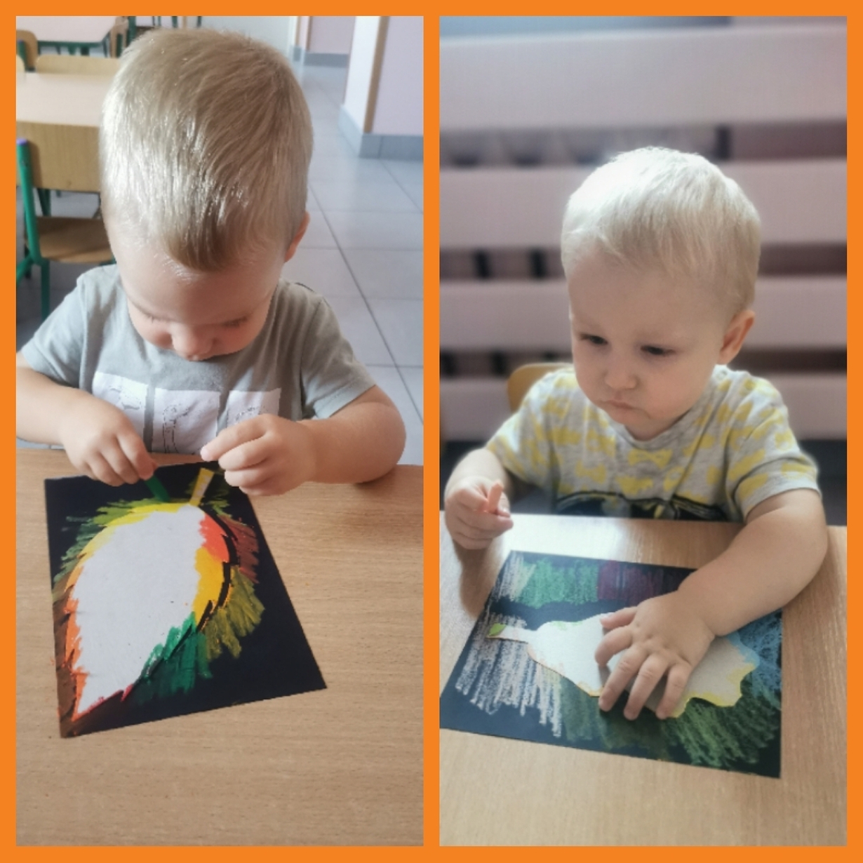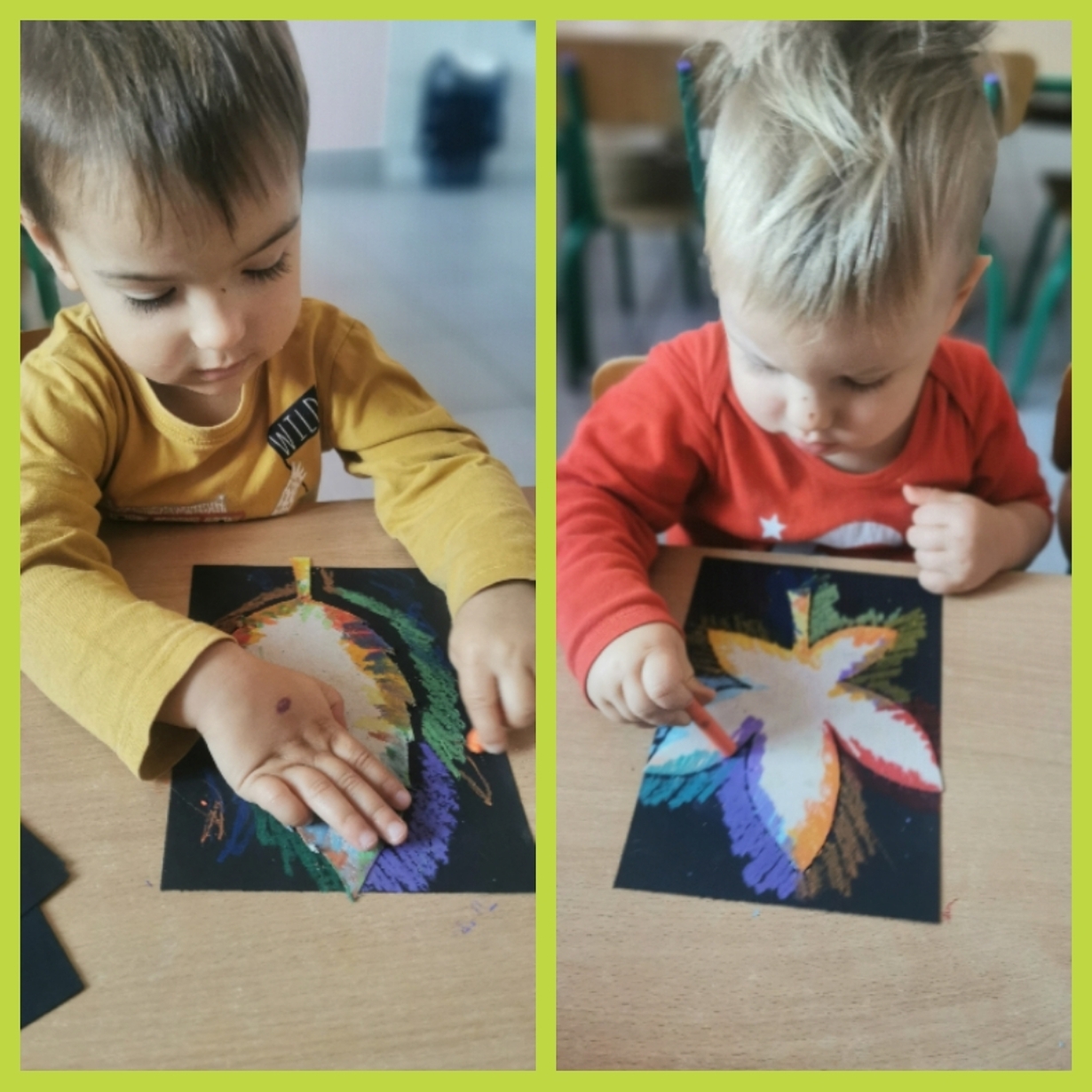 Jesień zawitała w nasze skromne progi, a my witając ją mile wykonaliśmy piękne prace plastyczne z motywem jesiennym. Na czarnych kartkach z wykorzystaniem kolorowych pasteli odbijaliśmy szablony jesiennych liści, które mienią się pięknymi barwami jakimi obdarowuje nas Jesień. Klimat tej magicznej pory roku zawitał na dobre w naszym żłobku i może wpłynąć na każdego, kto spojrzy na nasze dzieła. Zapraszamy do galerii zdjęć.