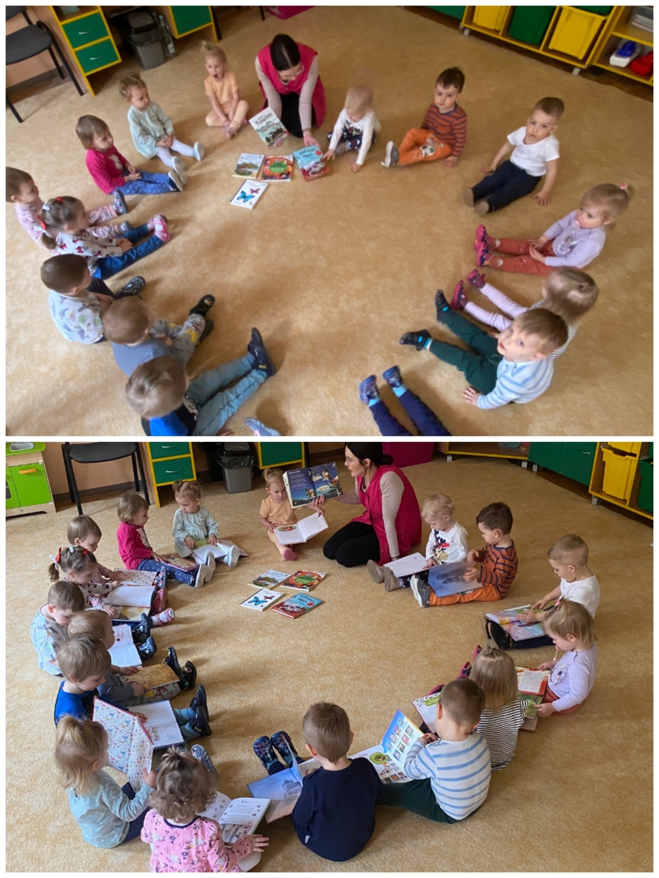 W tym tygodniu obchodziliśmy Międzynarodowy Dzień Książki. W tym dniu ciocie przeczytały Nam wiele ciekawych książek z morałem. My także uważnie słuchaliśmy i oglądaliśmy ilustracje z bajek. Czytanie książek to bardzo interesujące zajęć.