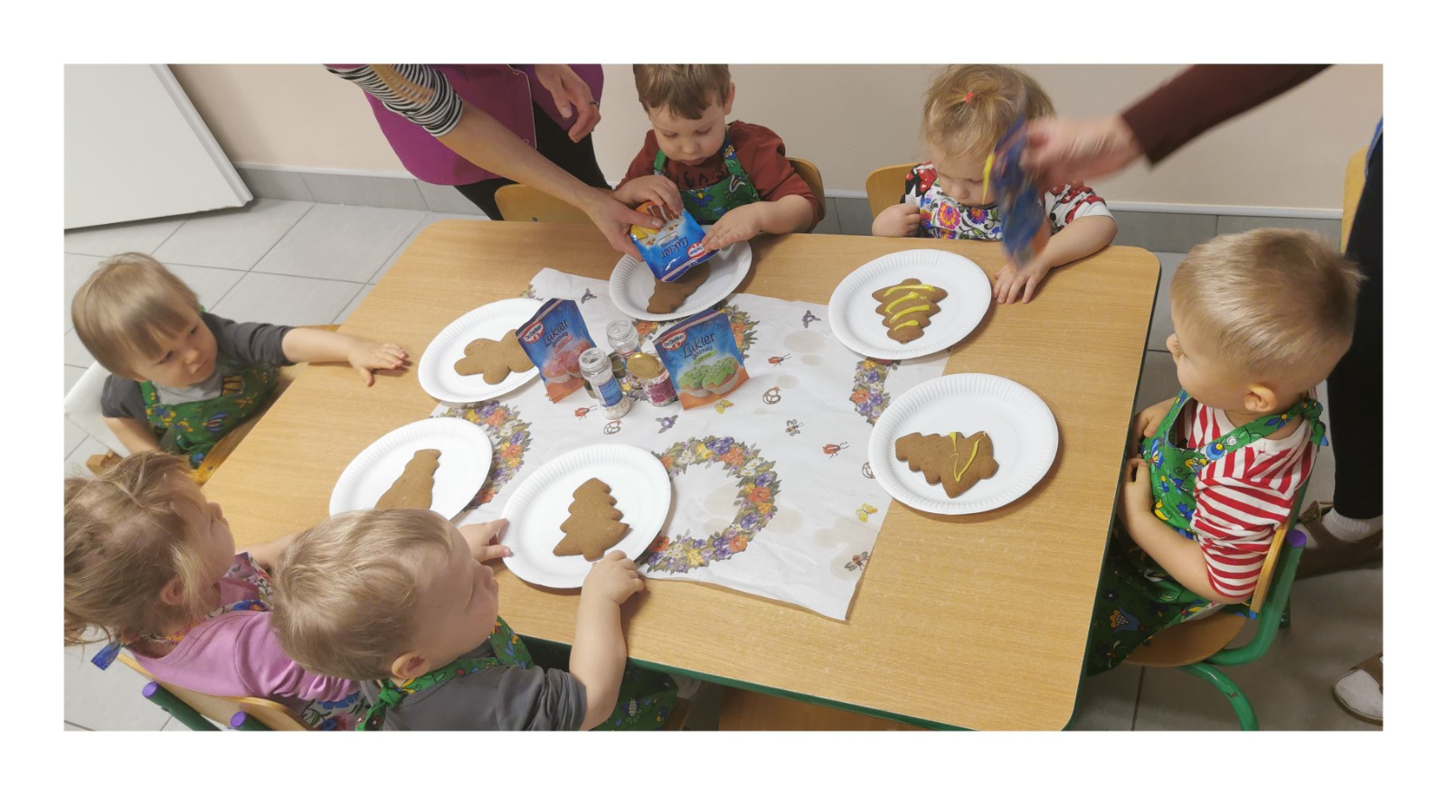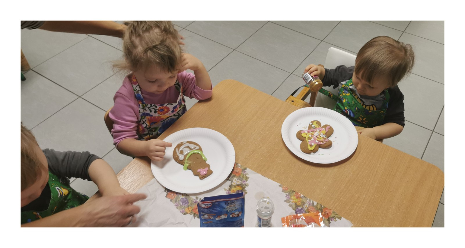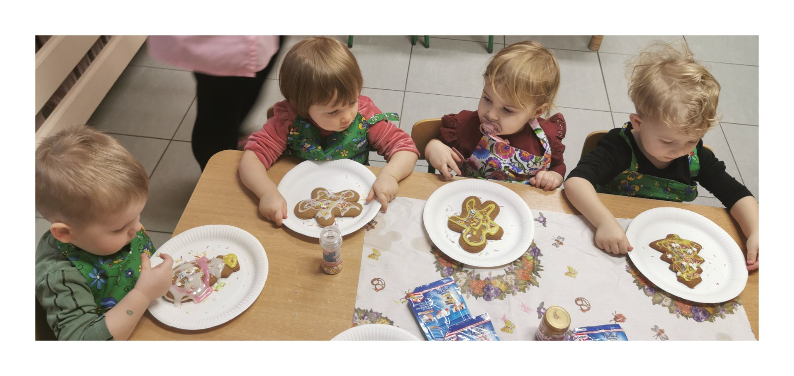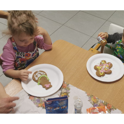 Zbliżają się najpiękniejsze święta w roku - święta pełne radości, miłości i rodzinnego ciepła - Boże Narodzenie. W każdym domu trwają przygotowania do tych wyjątkowych dni. W naszym żłobku również trwają takie przygotowania, mianowicie dzisiaj w grupie Biedronek dzieci udekorowały przepięknie pachnące pierniki. Wykorzystaliśmy w tym celu kolorowy lukier oraz kolorową posypkę. Atmosferę Świąt czuć już na całego a my korzystając z okazji życzymy naszym podopiecznym i ich rodzinie spokojnych Świąt pełnych radości i ciepła, a w Nowym Roku dużo szczęścia i pogody ducha.