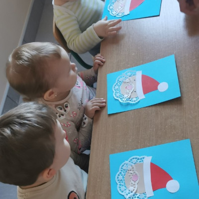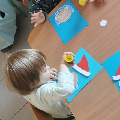 W grupie Biedronek w oczekiwaniu na szczególne spotkanie ze Św. Mikołajem wykonaliśmy prace plastyczne, które nawiązywały tematem do jego osoby. Dzieci z entuzjazmem wykonały portret Mikołaja, przyklejały mu czapkę, nos i brodę. Już teraz buźki Mikołajów obserwują nasz żłobek i małych milusińskich. Zapraszamy do galerii zdjęć.