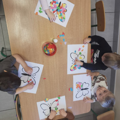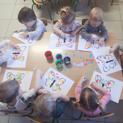 W naszym żłobeczku zawitał wyjątkowy gość - Pani Wiosna. Od razu zrobiło się pogodnie i radośnie. Pani Wiosna dla każdego milusińskiego miała słodki upominek. W ten wyjątkowy Pierwszy Dzień Wiosny ciocie przygotowały zajęcia, w których zadaniem dzieci było odnaleźć pierwsze oznaki wiosny. Poszło nam rewelacyjnie. Ciepłe słoneczko wprowadza nas w wesoły nastrój a nasze małe Biedroneczki postanowiły rozwijać swój talent artystyczny. Wykonaliśmy wiosenne prace, których tematem były motyle. Dzieci metodą wydzieranki wykleiły motylki, nadając im radosny i pełen wdzięku wygląd. Wiosenna aura zawitała na żłobkowym korytarzu. W tym dniu również z okazji DNIA WODY dzieci łowiły kaczuszki z wody oraz przyglądały się pływającym zabawkom: delfinowi, żółwiowi i kaczuszce. Zapraszamy do galerii zdjęć.
