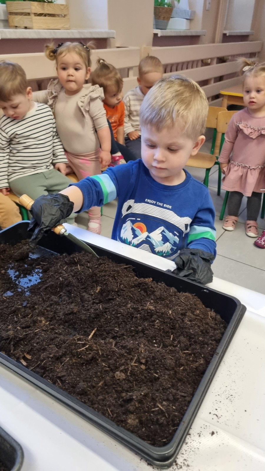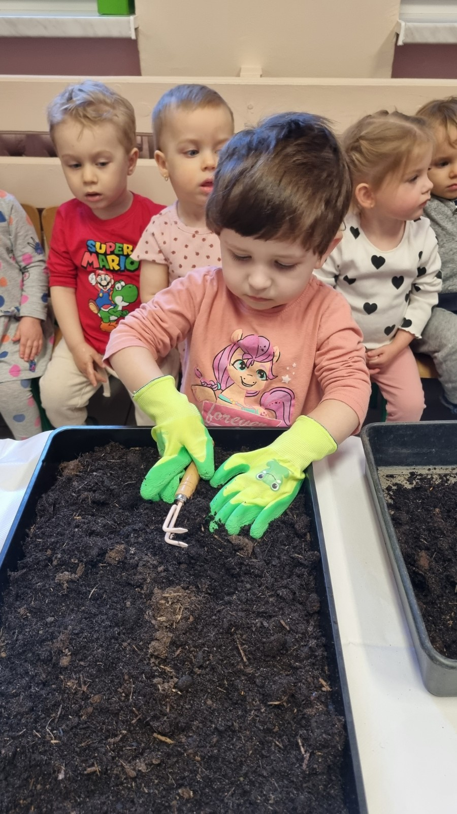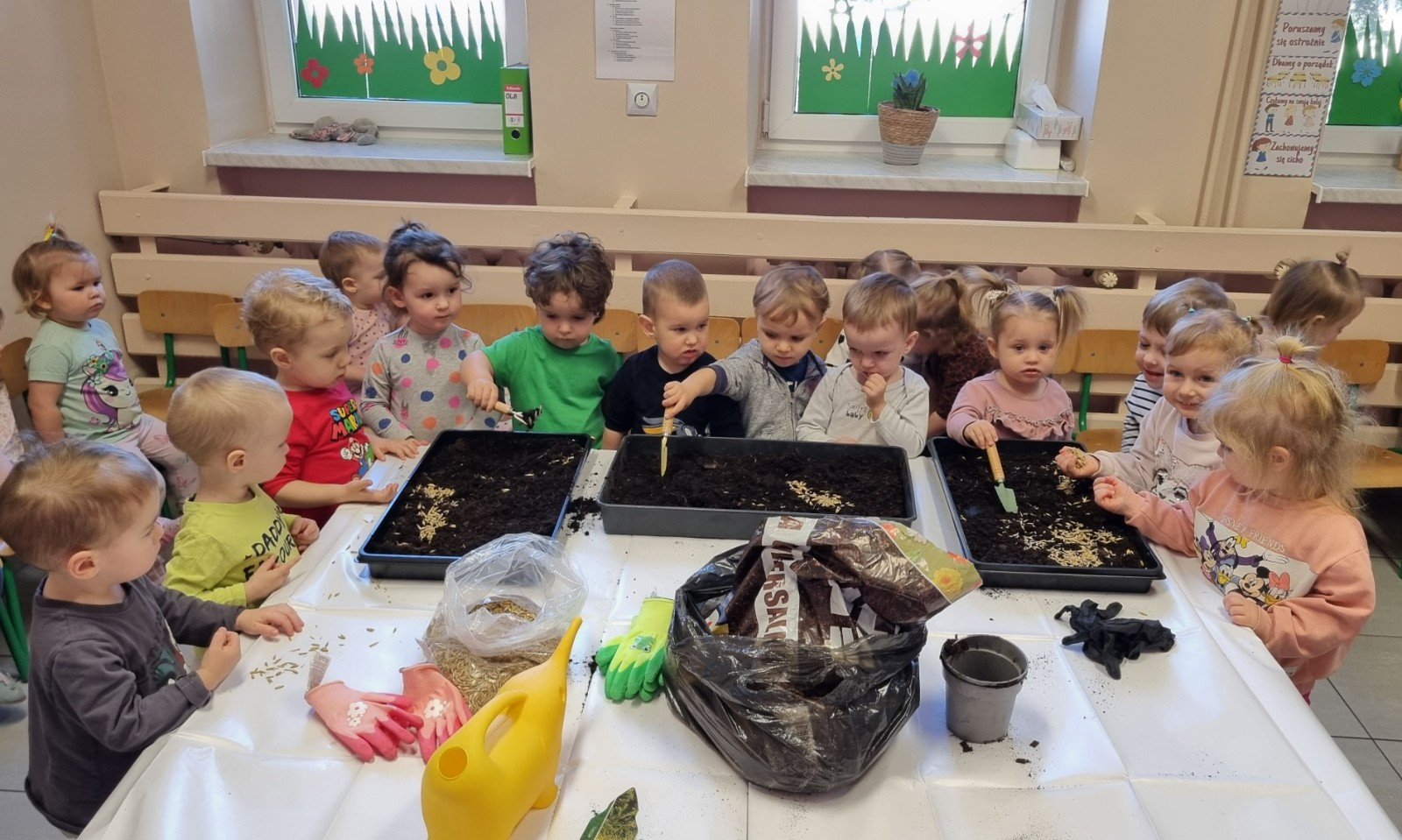 Dzisiaj Biedroneczki wybrały się na spacer w poszukiwaniu wiosny. Na trawie zobaczyliśmy pierwsze kwiatki. Słyszeliśmy też ptaki, które pięknie śpiewały. Wiosna powoli do nas przychodzi. Maluszki wykonały również pracę plastyczną i zasiały owies.