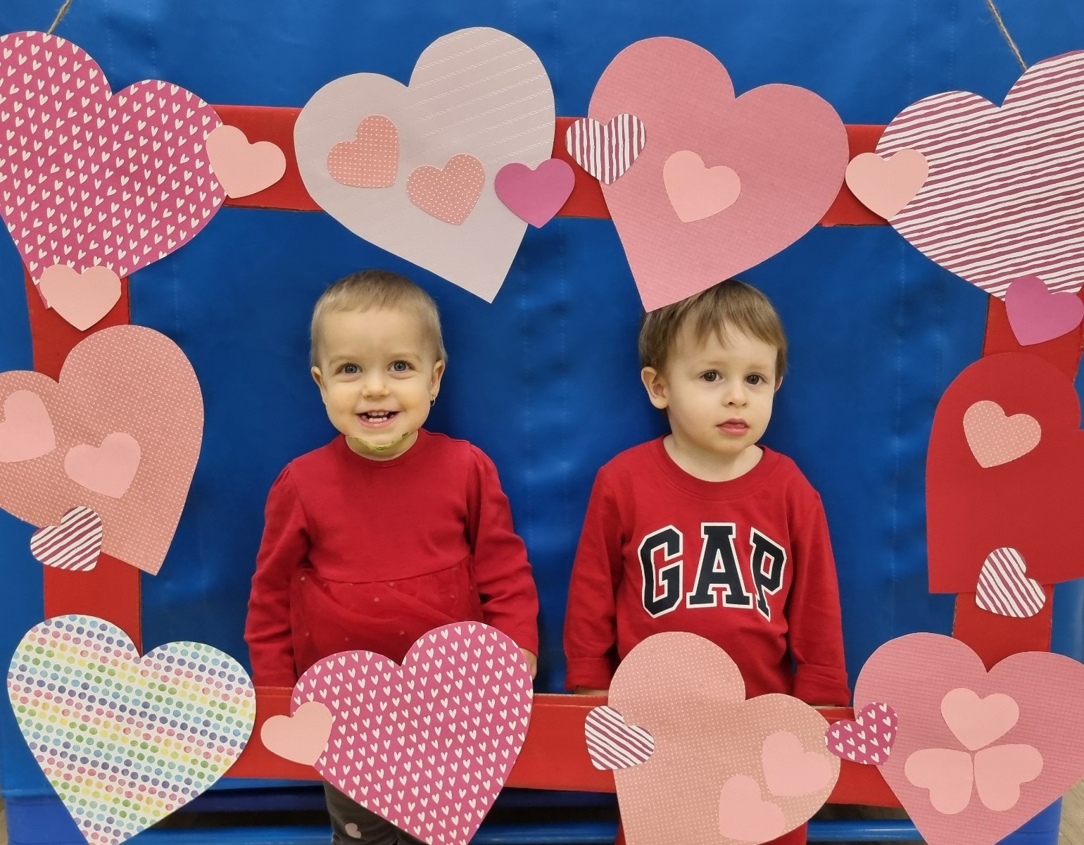 Zdjecia przedstawiają dzieci świętujące walentynki.