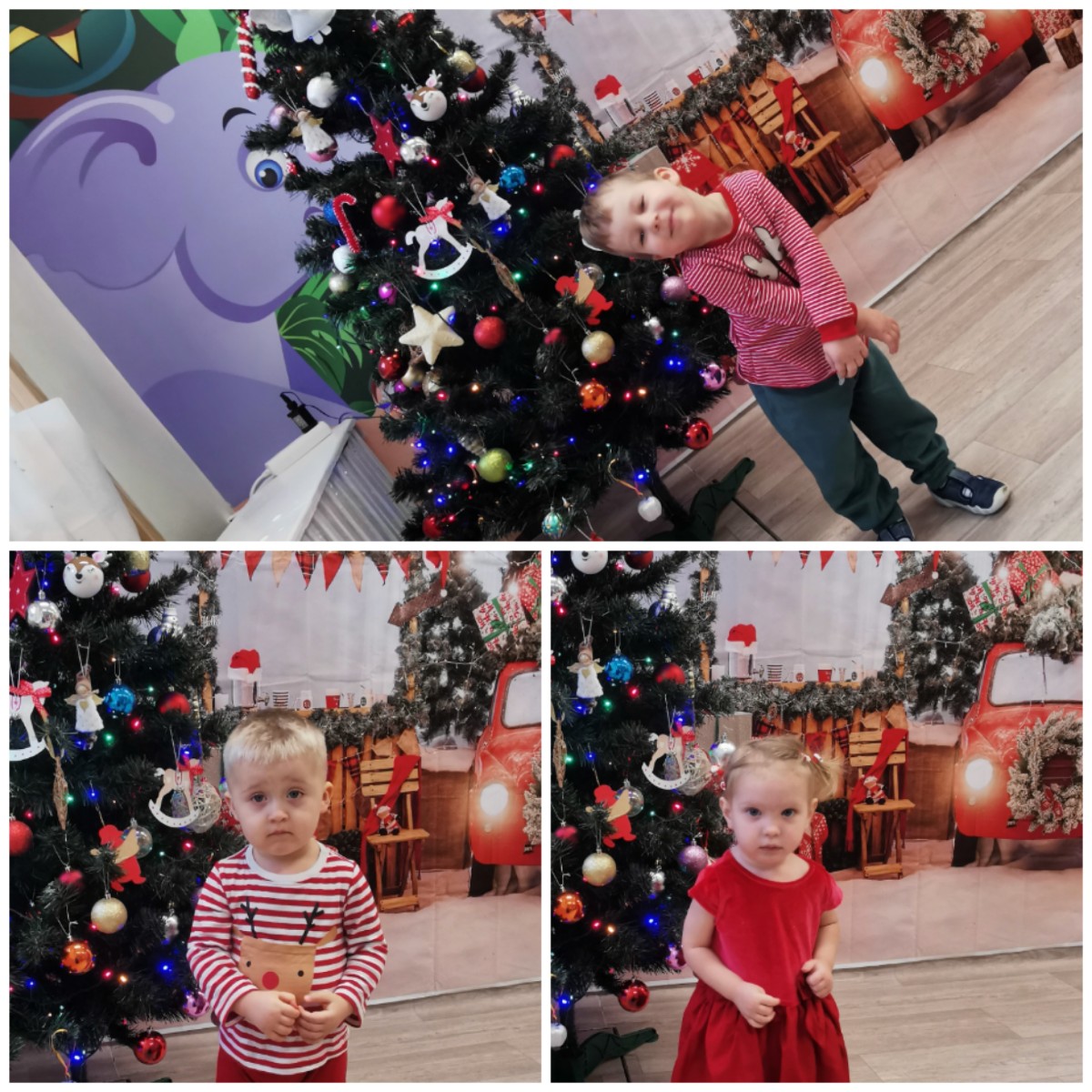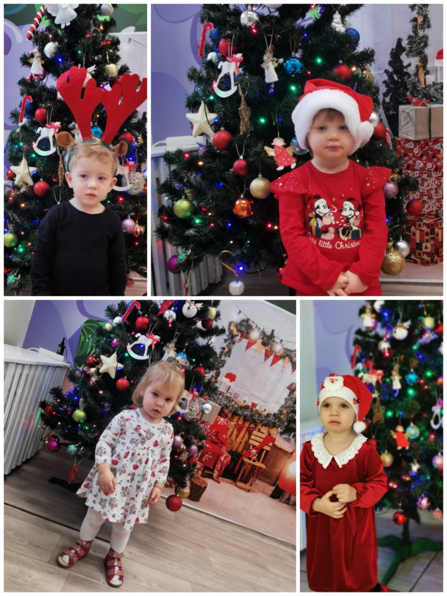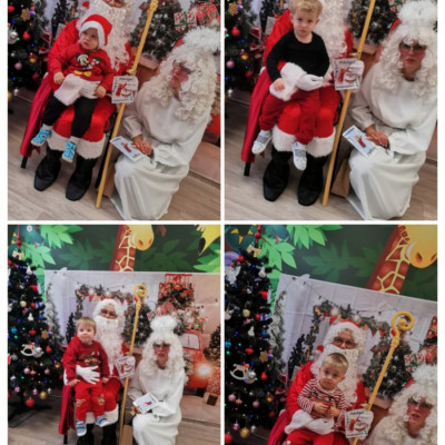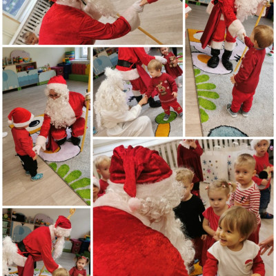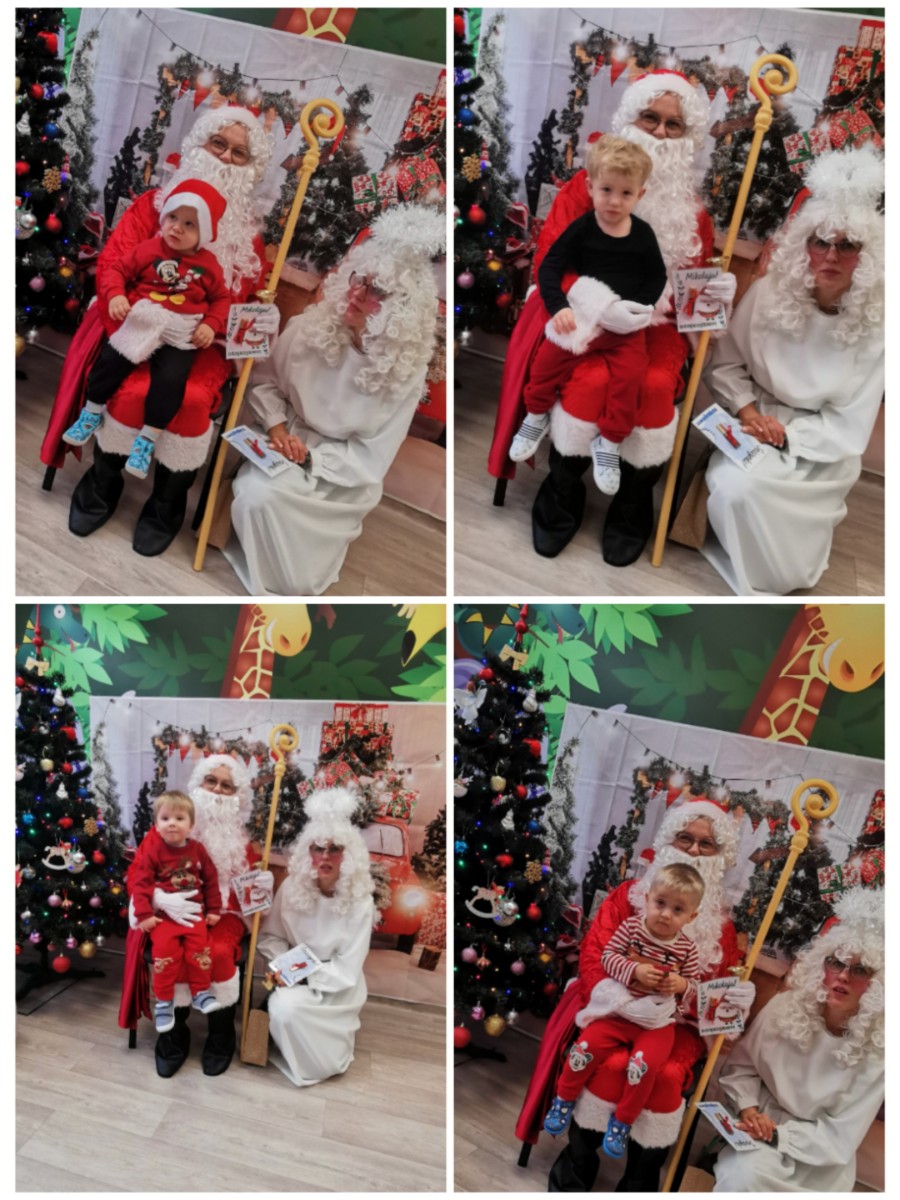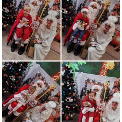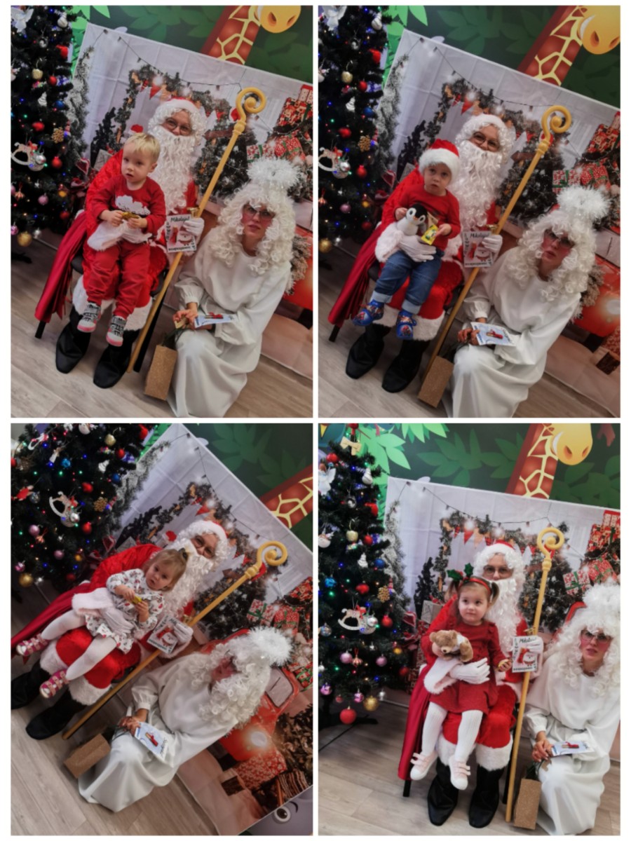 Zdjęcia przedstawiają dzieci podczas wizyty Mikołaja.