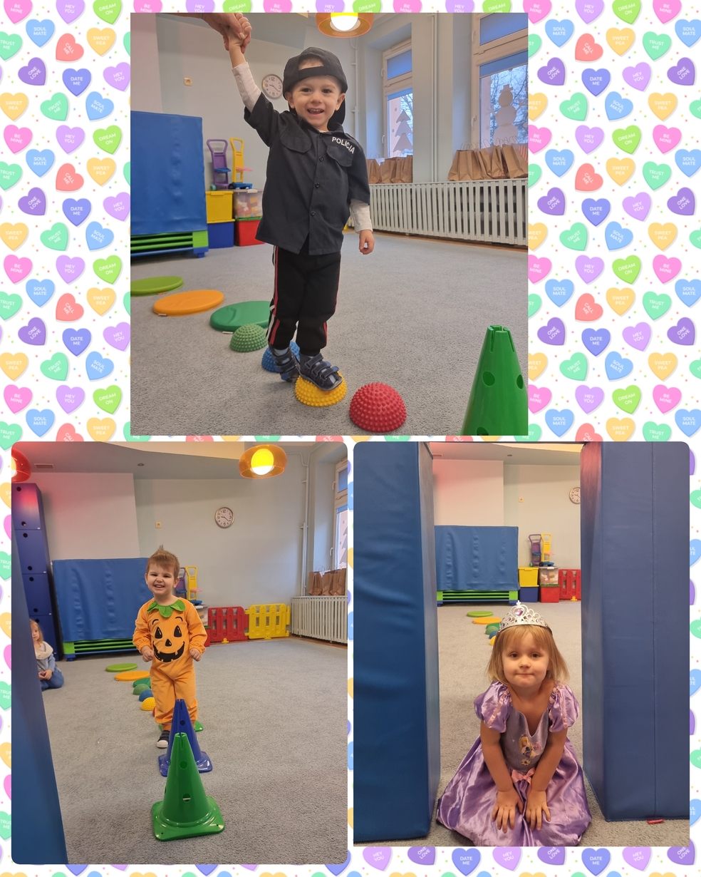 Chłopiec przebrany za policjanta wraz z opiekunkami czuwał nad bezpieczeństwem zabawy.