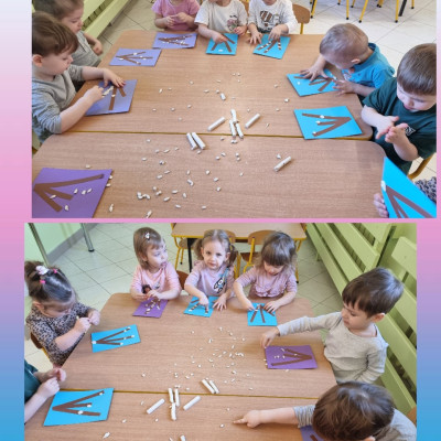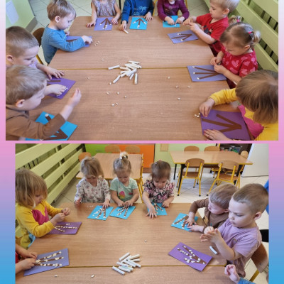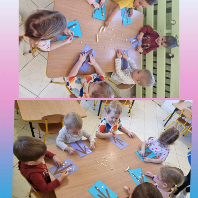 (Na kolorowej kartce papieru przyklejały plasteline).