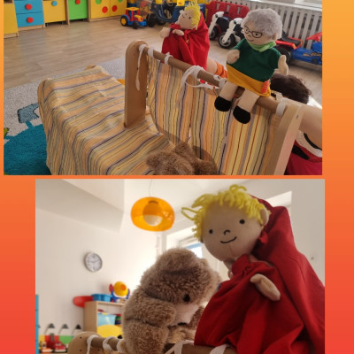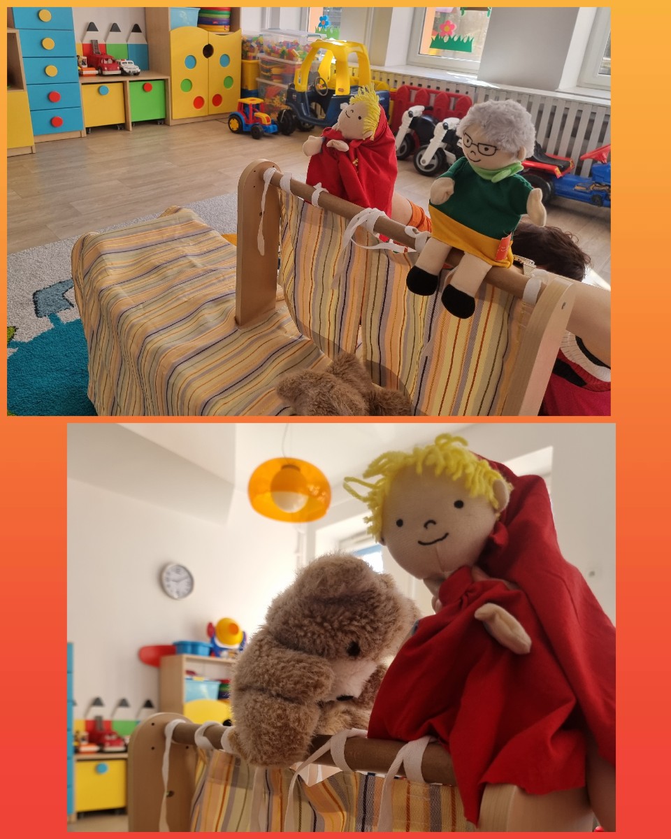 Żabki z ogromnym zainteresowaniem śledziły losy Czerwonego Kapturka.