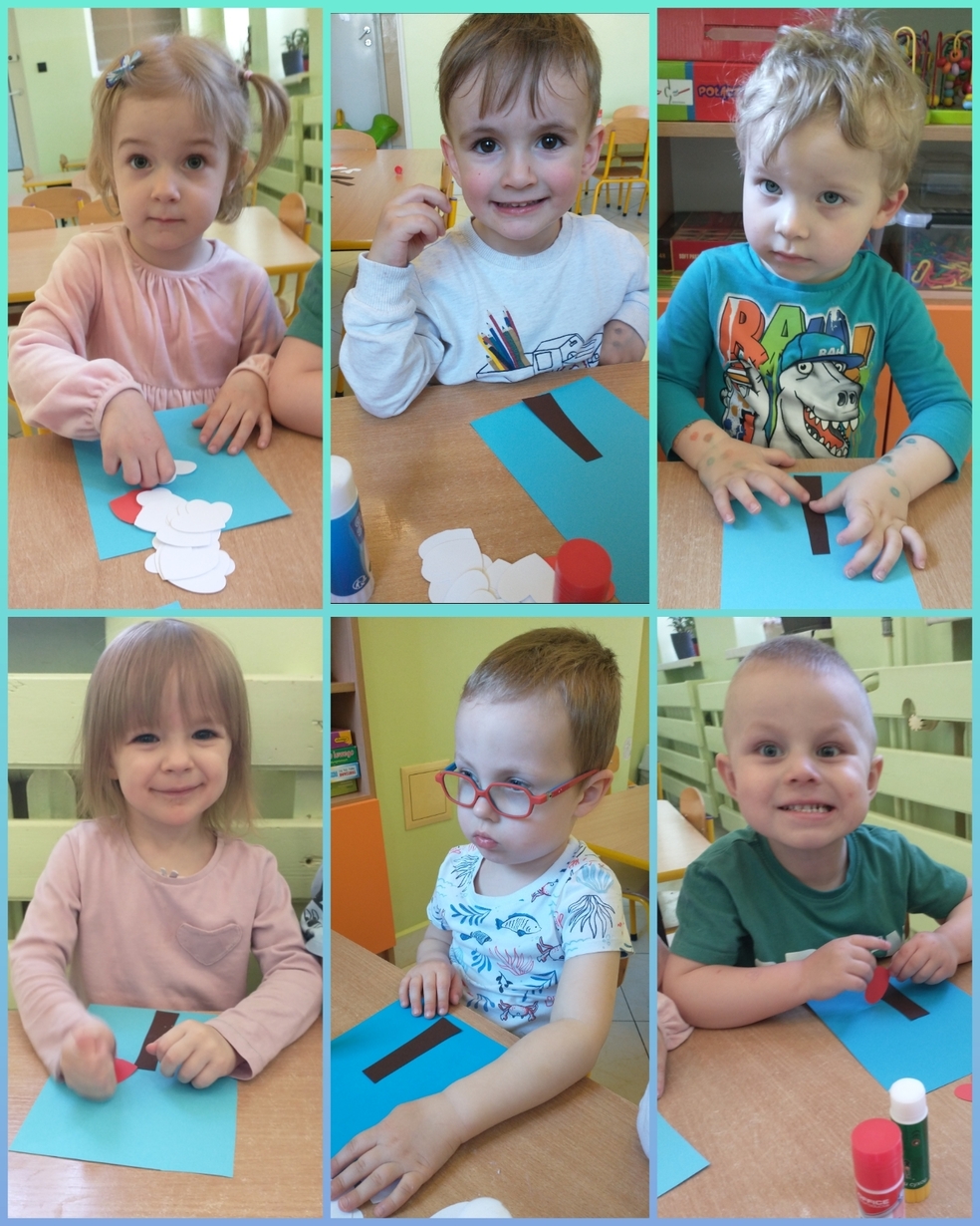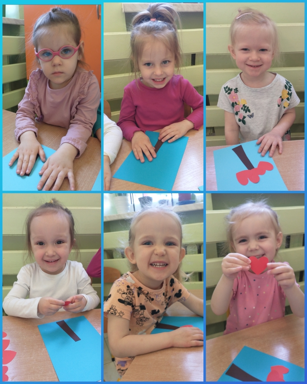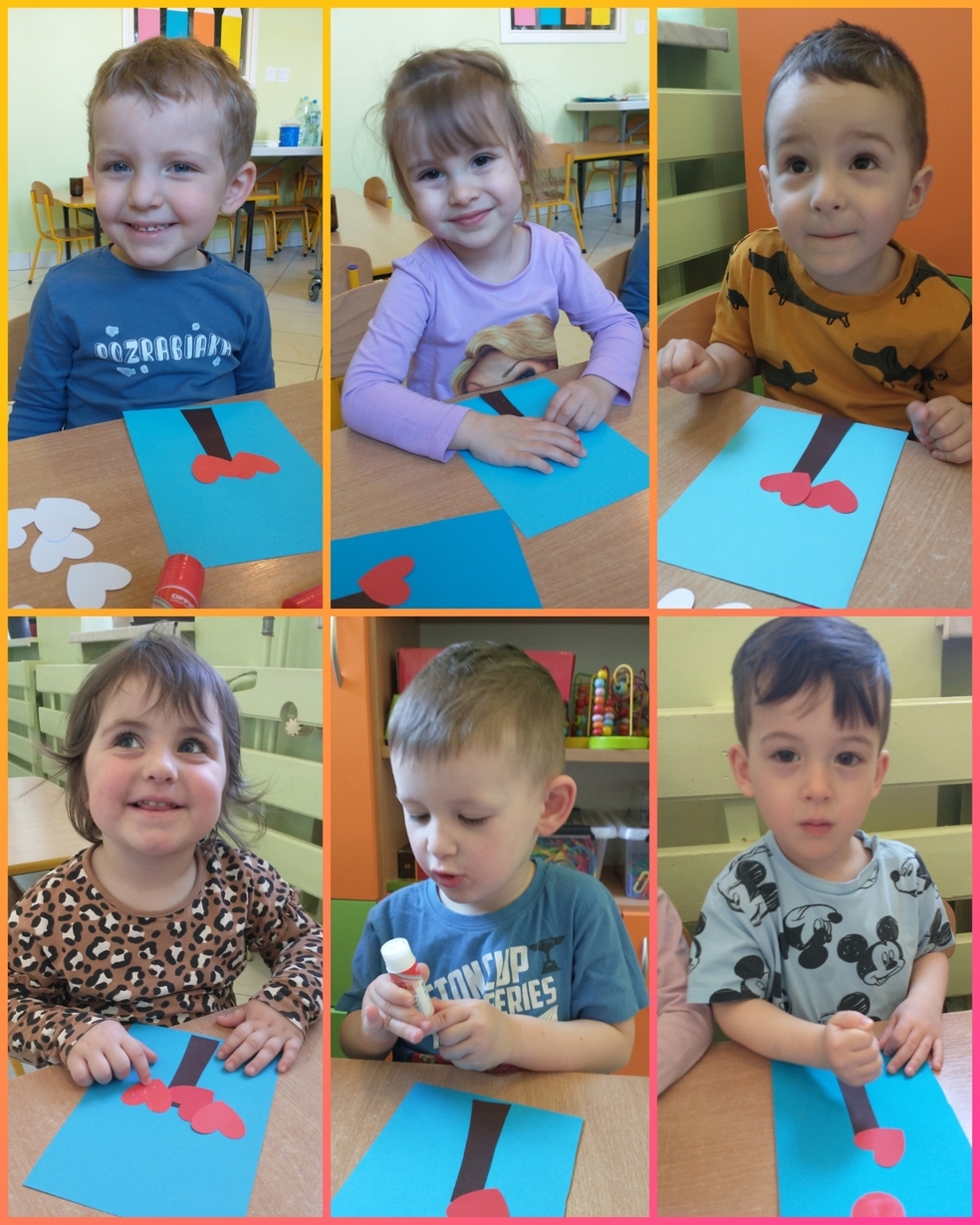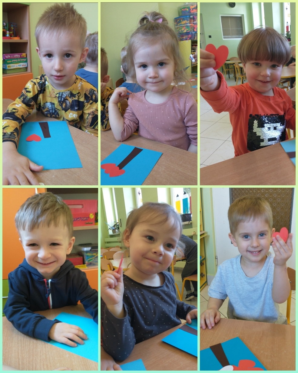 Każde z dzieci otrzymało karteczki z "pniem" drzewa którego korona składała się z biało-czerwonych serduszek, które dzieci własnoręcznie przyklejały.