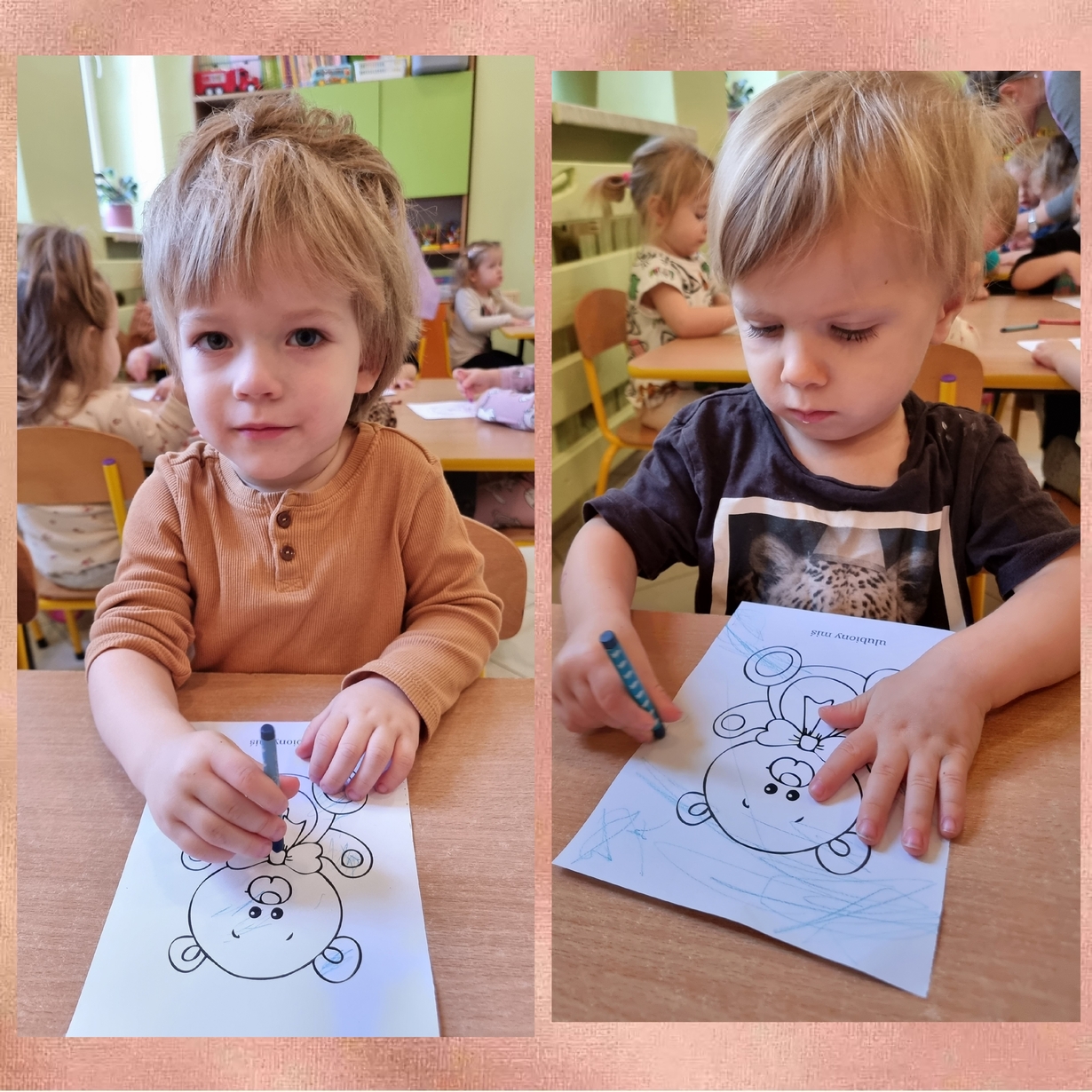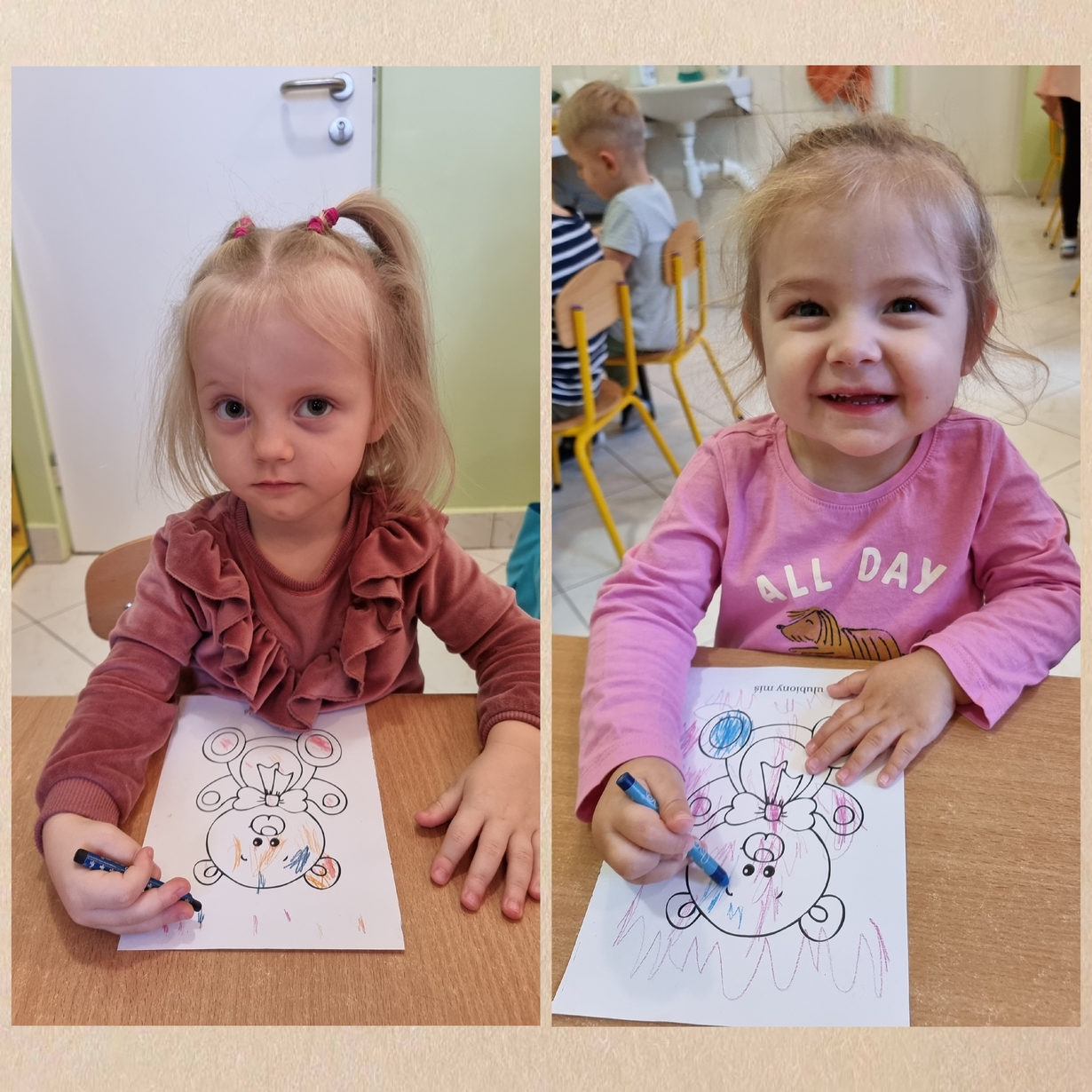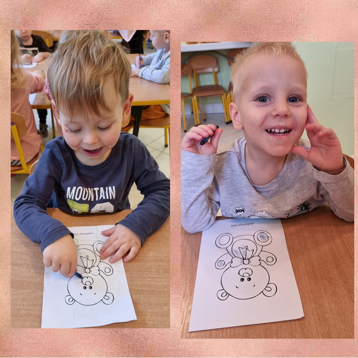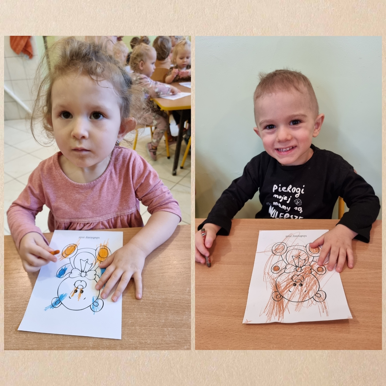 Ćwiczyliśmy także zdolności manualne przy kolorowaniu misia.