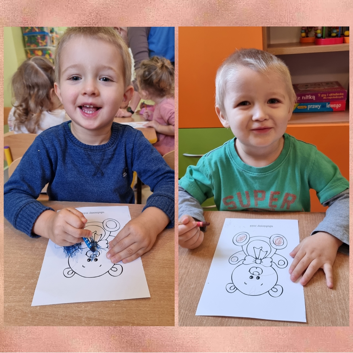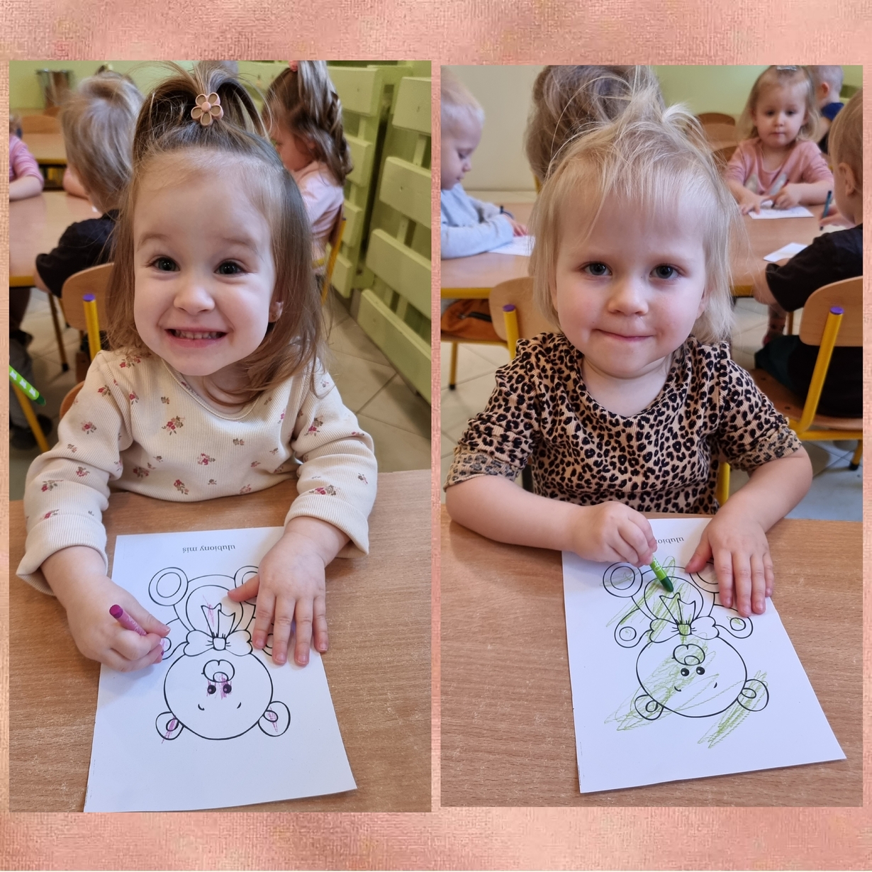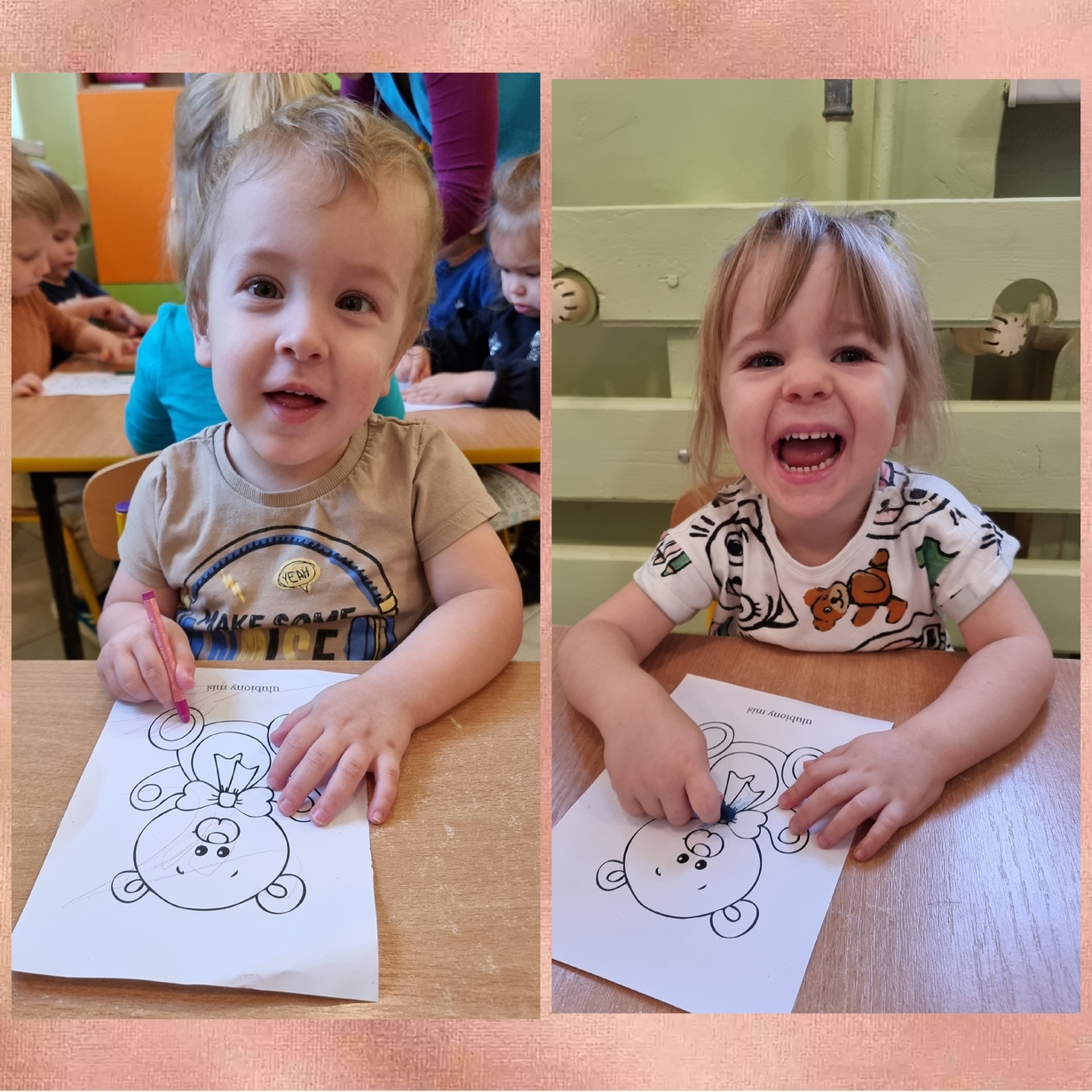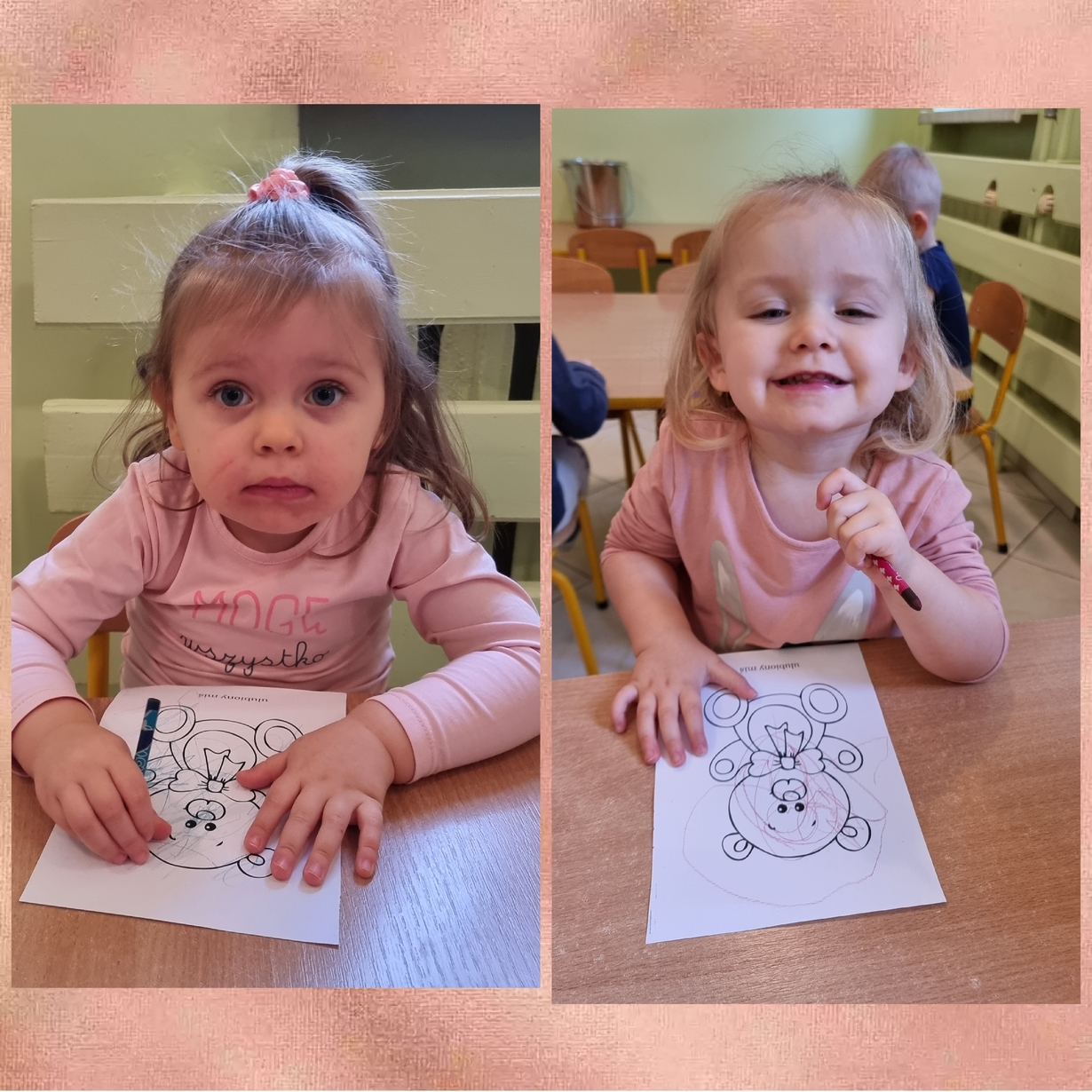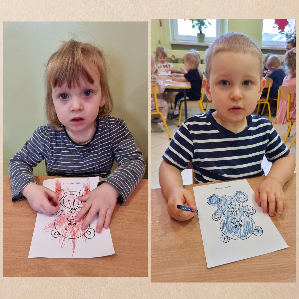 Ćwiczyliśmy także zdolności manualne przy kolorowaniu misia.