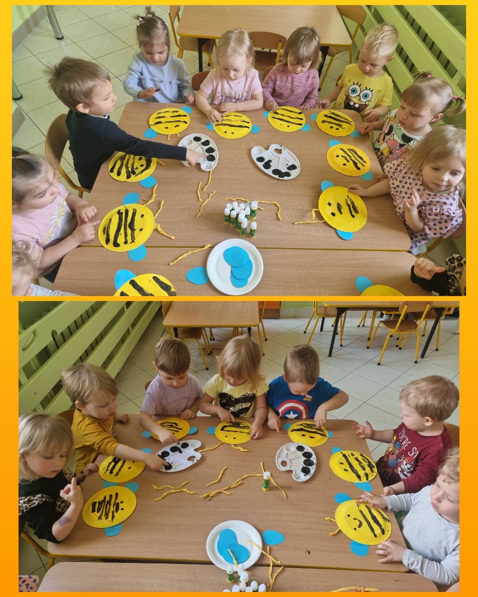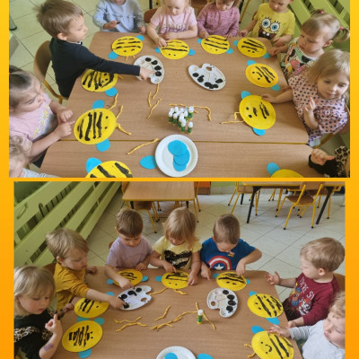 Zdjęcie przedstawia dzieci podczas zajęć w żłobku z okazji dnia pszczoły