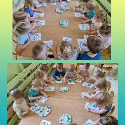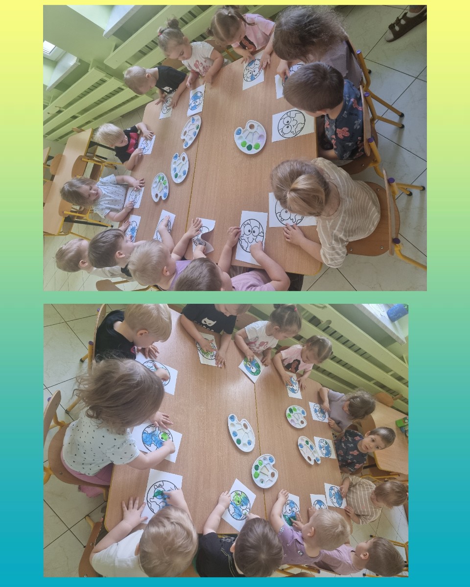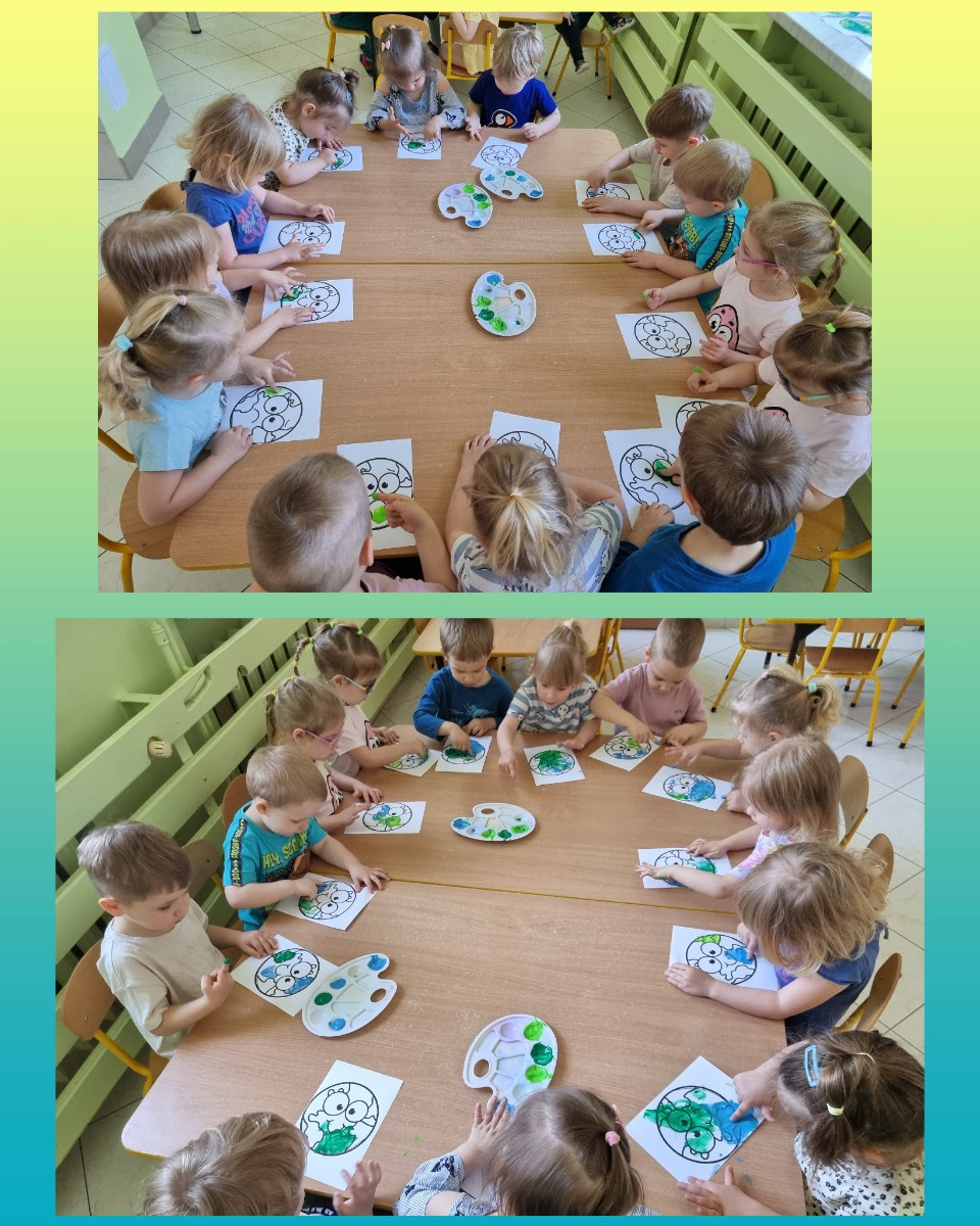 na koniec dzieci wykonały piękne prace plastyczne malując swoimi paluszkami .