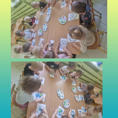 Dziś świętowaliśmy Dzień Ziemi z tej okazji dzieci wzięły udział w zajęciach, w których dowiedziały się na czym polega segregacja odpadów, jak dbać o przyrodę, powietrze, wodę, tak aby nasza Ziemia była coraz piękniejsza i czystsza.