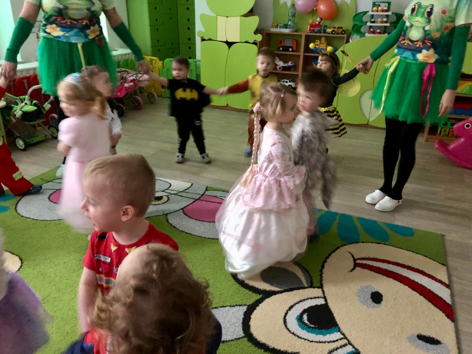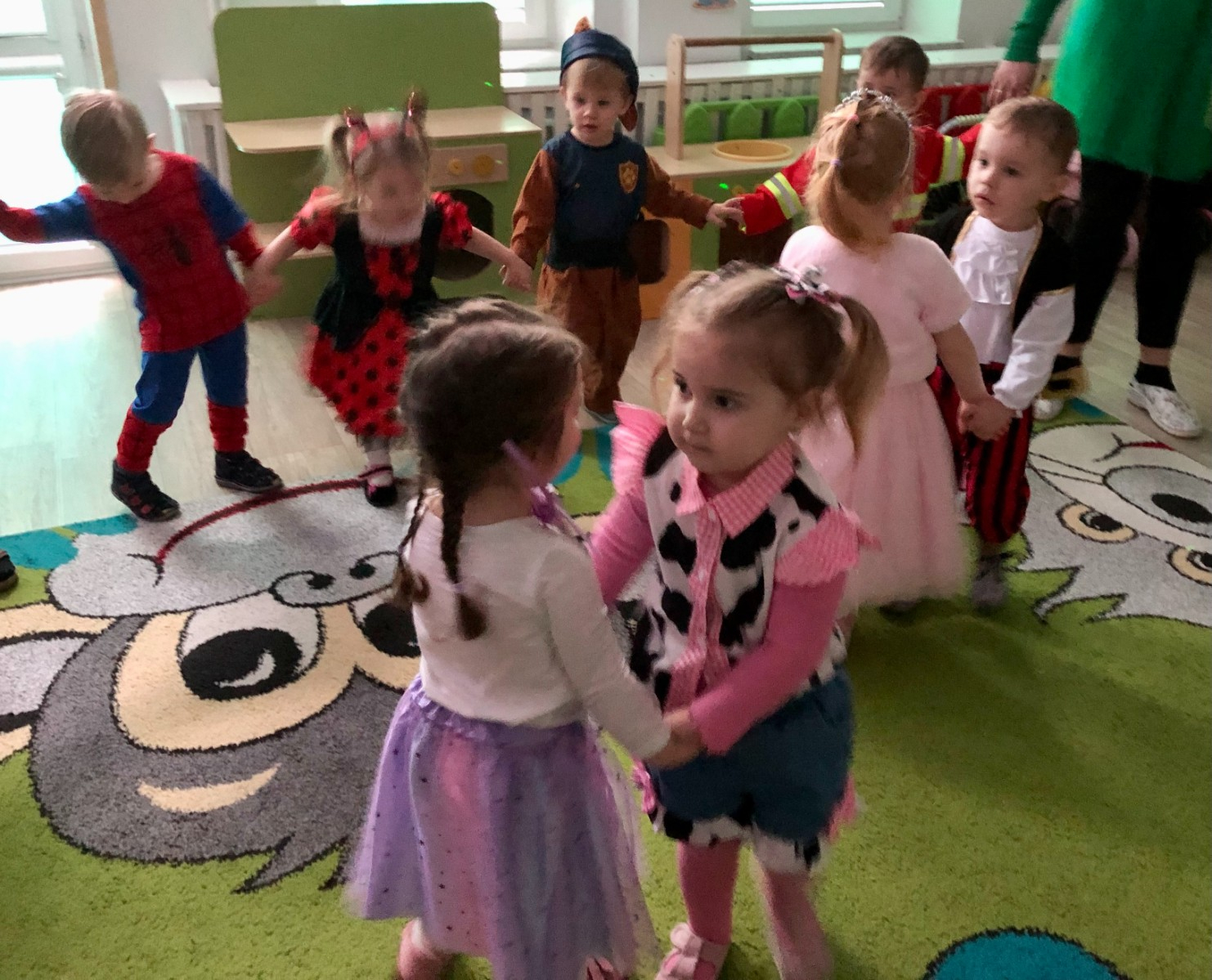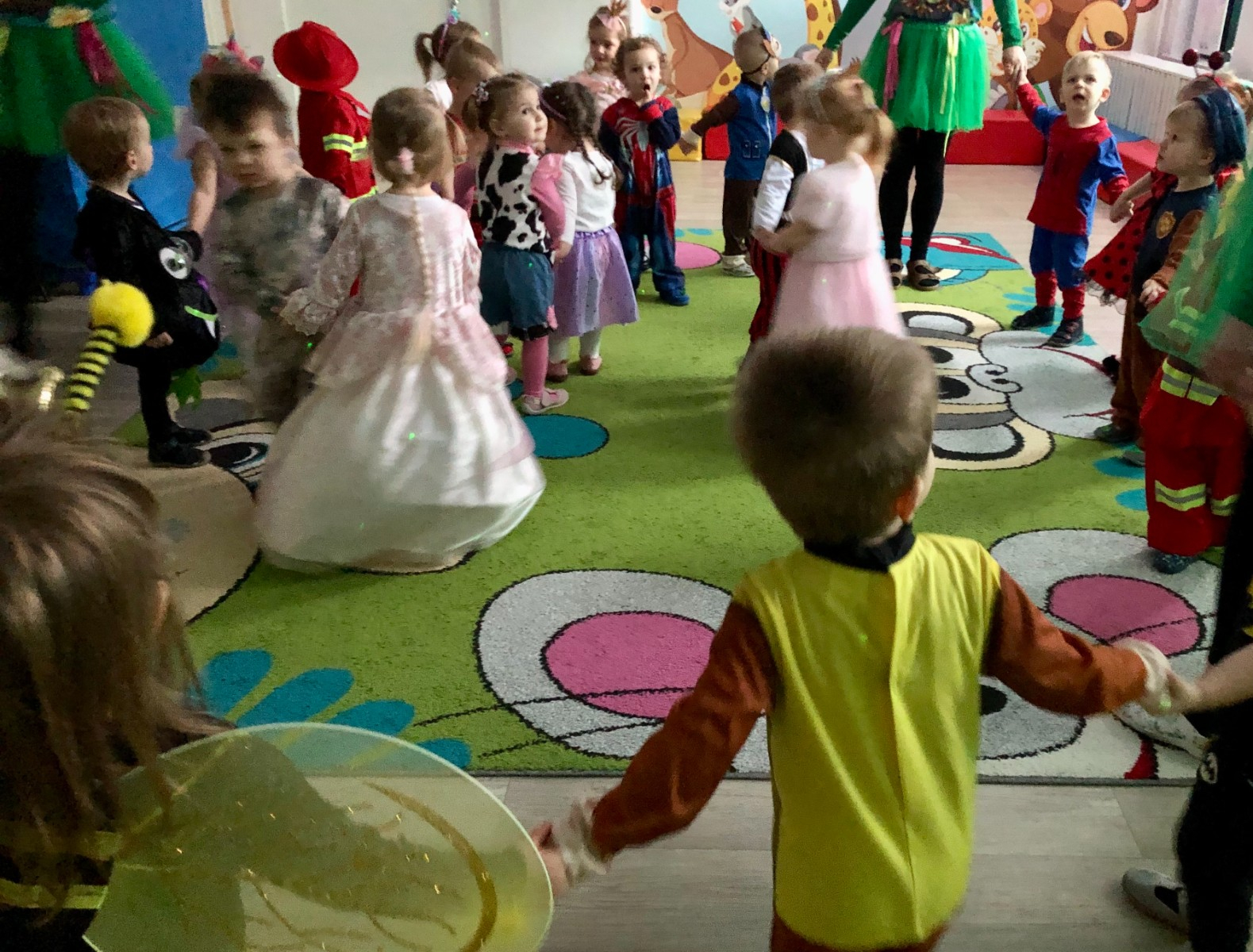W tańcu wirowały wróżki, strażacy, pirat, pszczółka, biedronka, spider man, bohaterowie psiego patrolu, księżniczki i motyki.