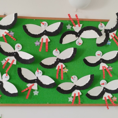 Nasze żabki wykonały dziś pracę plastyczną - bociany. Zapraszamy do prezentacji gotowych prac.