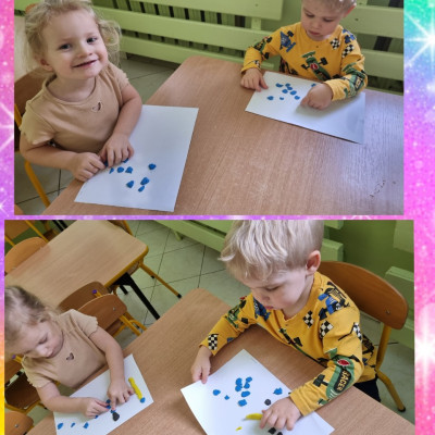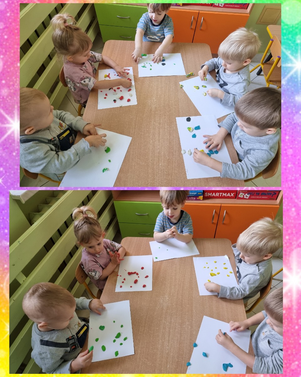 Tym razem do nauki kolorów wykorzystaliśmy kredki, plastelinę i kulki z kolorowych kartek.