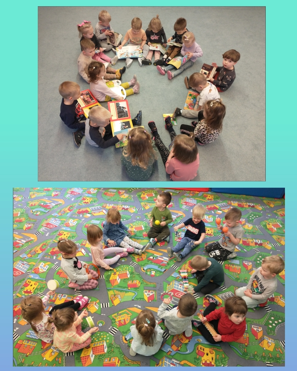 Dzieci rozwijały swoją wyobraźnie przez oglądanie obrazków w różnych książeczkach.
