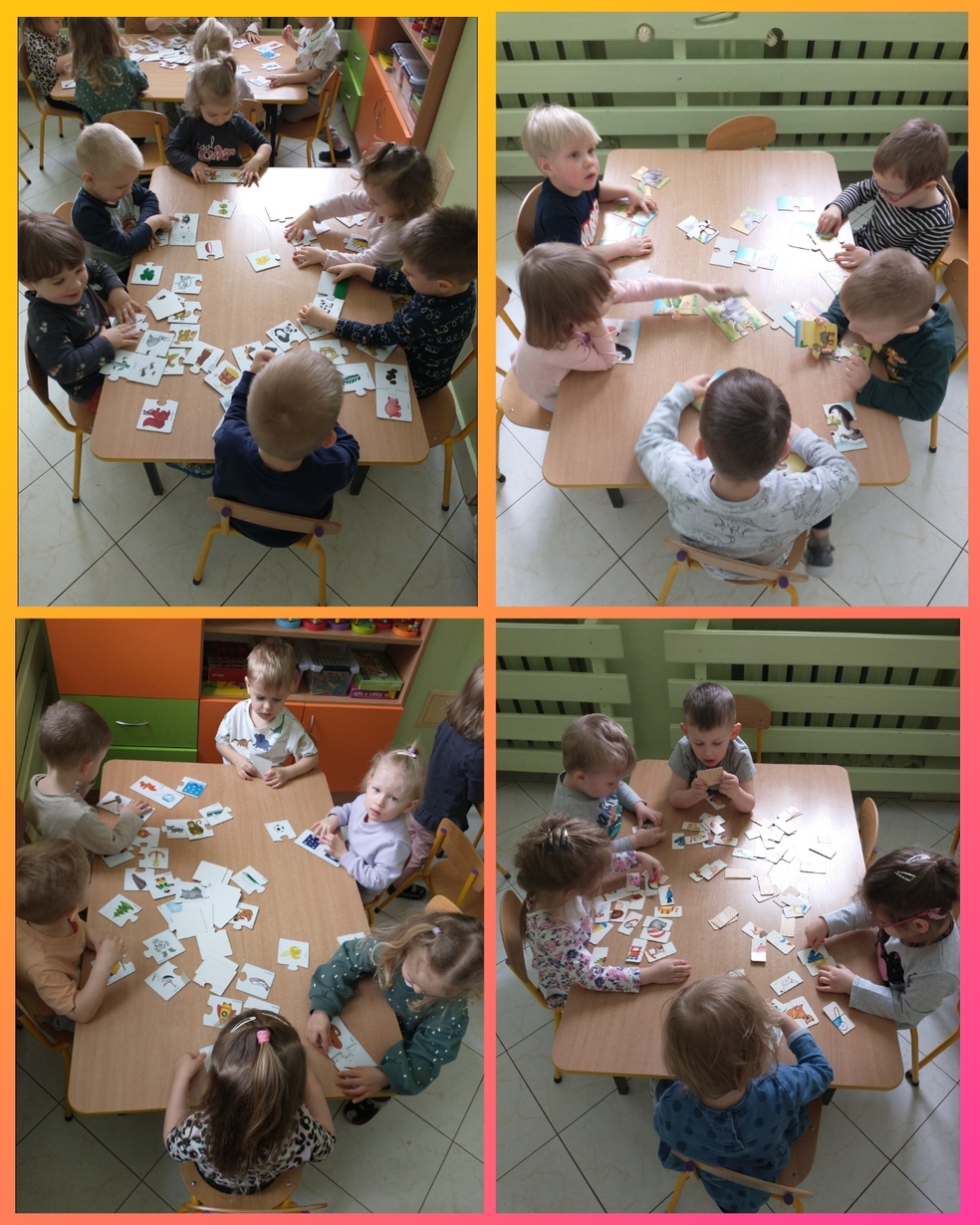 Nasi podopieczni ćwiczyli również koordynację ręka-oko, dopasowując otrzymane elementy układanek do pustych miejsc które po nich zostały.