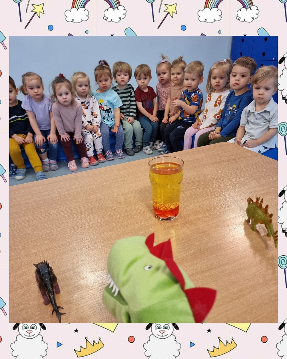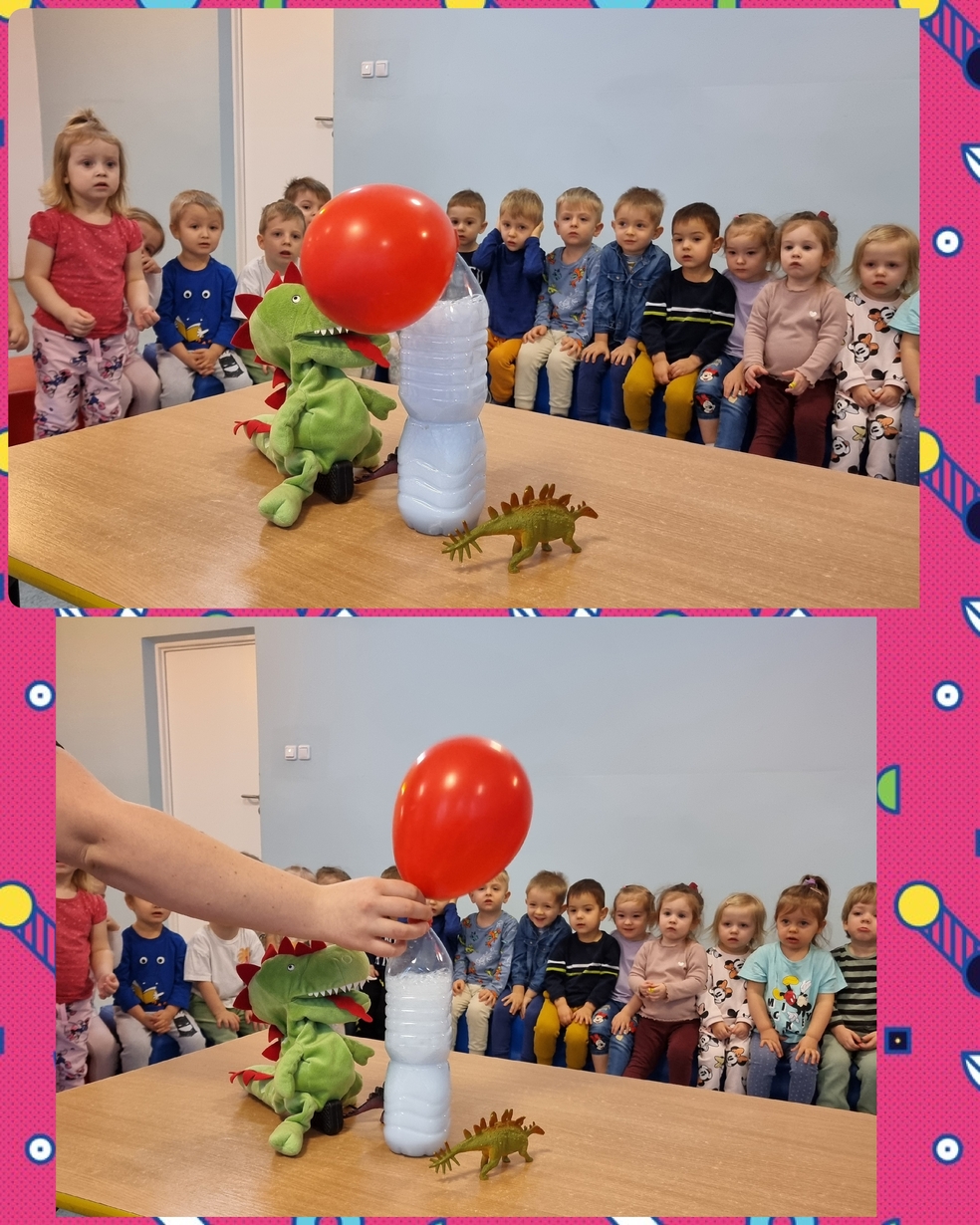 Dzieci z zainteresowaniem oglądały doświadczenia chemiczne które przygotowały ciocię : wulkan, lampa lawa, nadmuchanie balona.