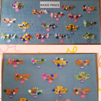Okres karnawału trwa więc nasze kochane żabki postanowiły wykonać pracę plastyczną "kolorowe maski"