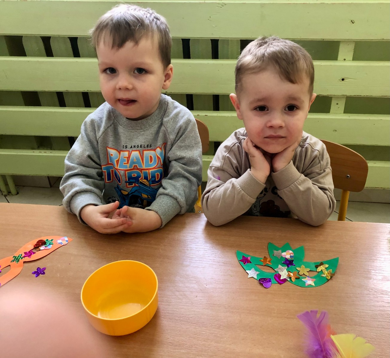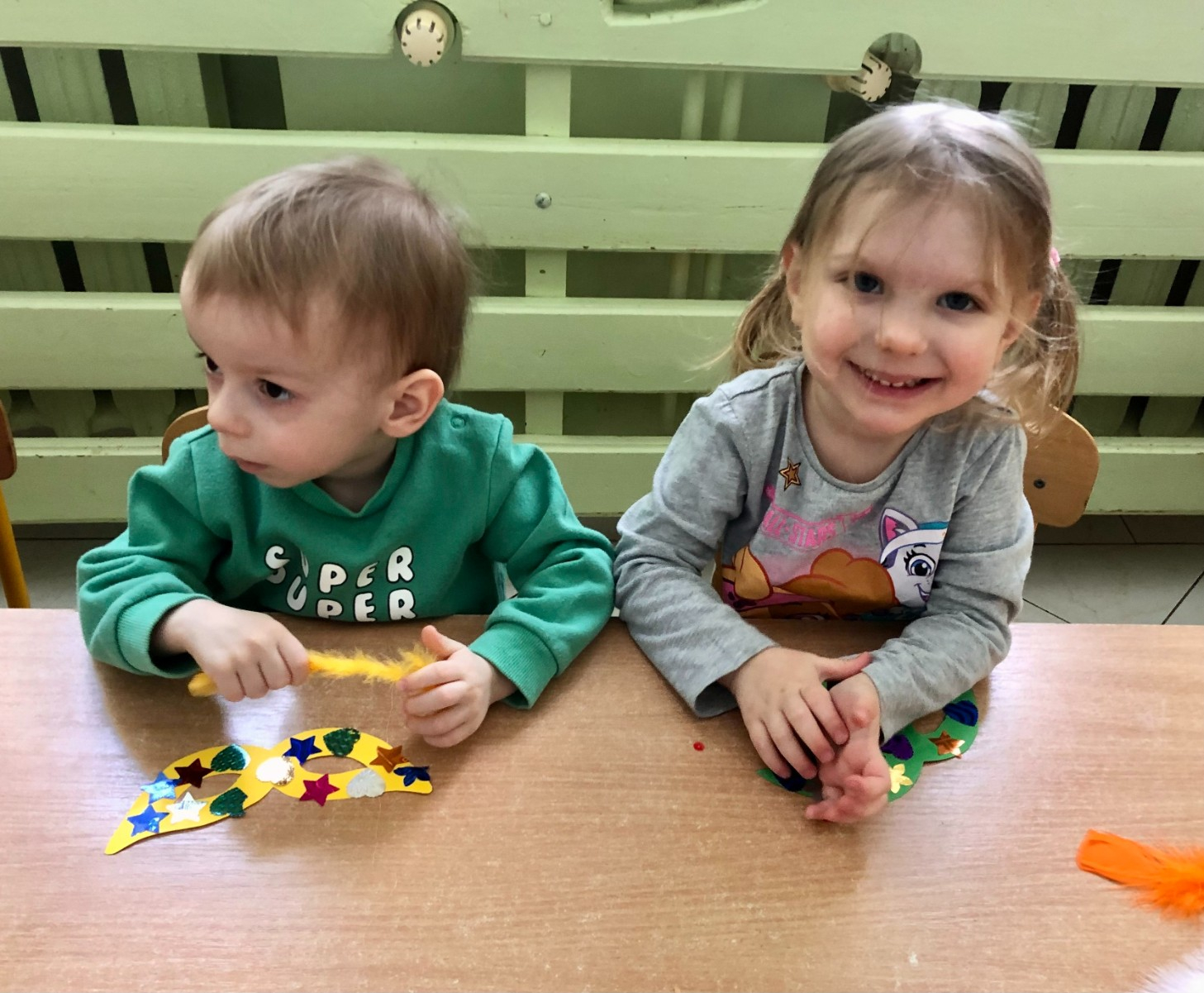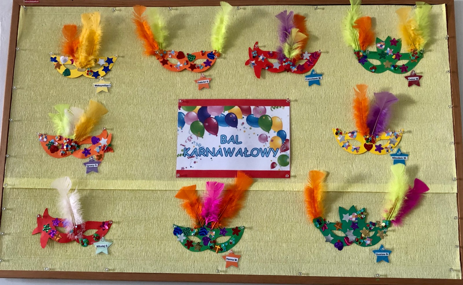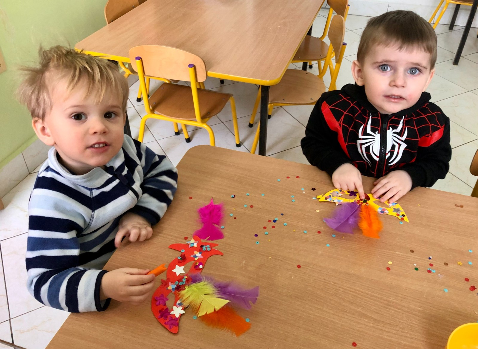 Do dyspozycji miały kolorowe piórka, papierowe kształty (kółeczka, gwiazdki, kwiatki i serduszka) oraz błyszczące cekiny.