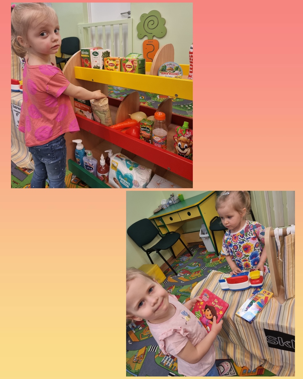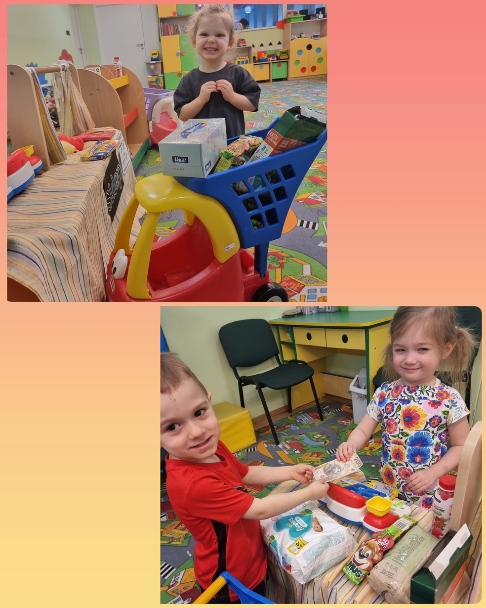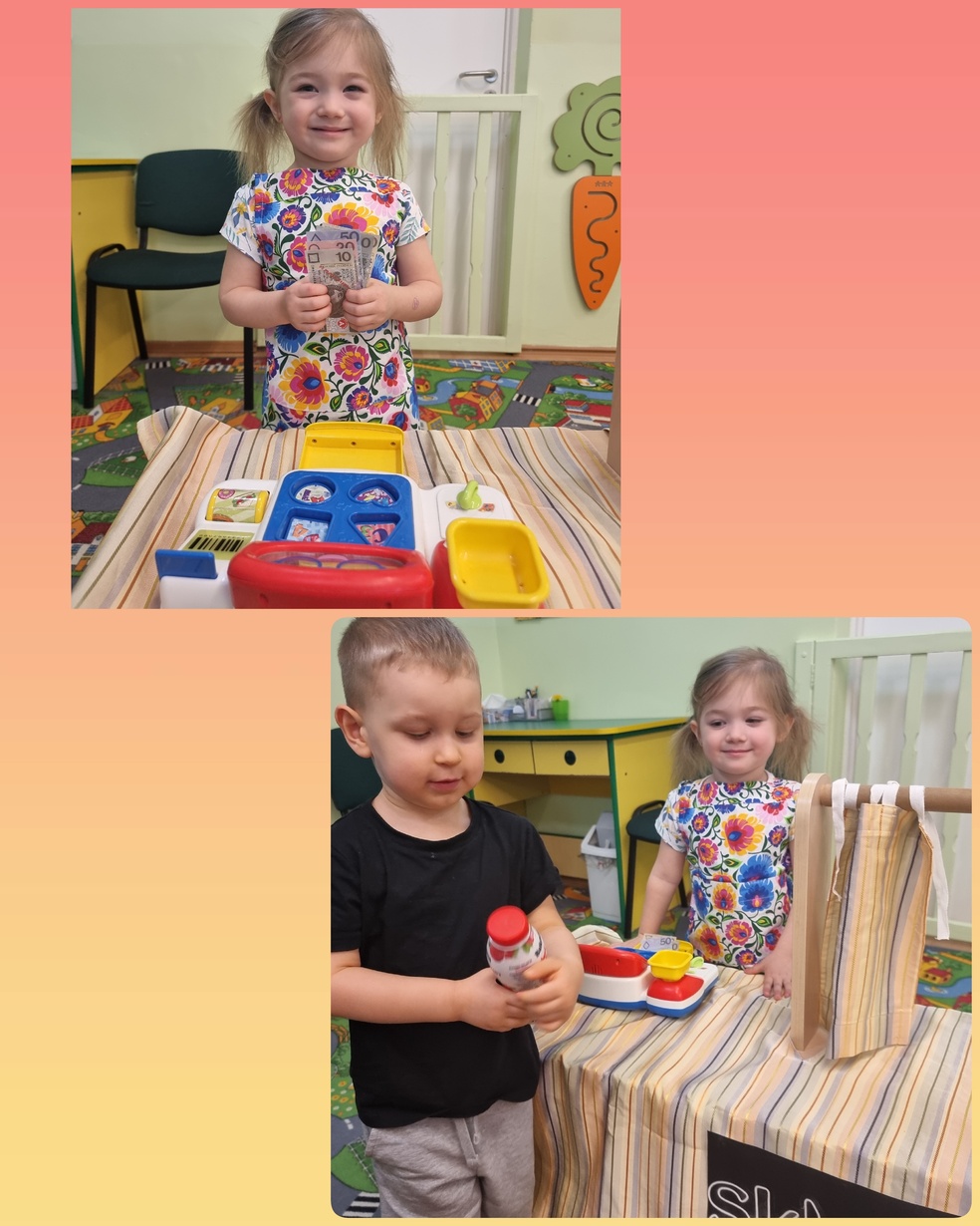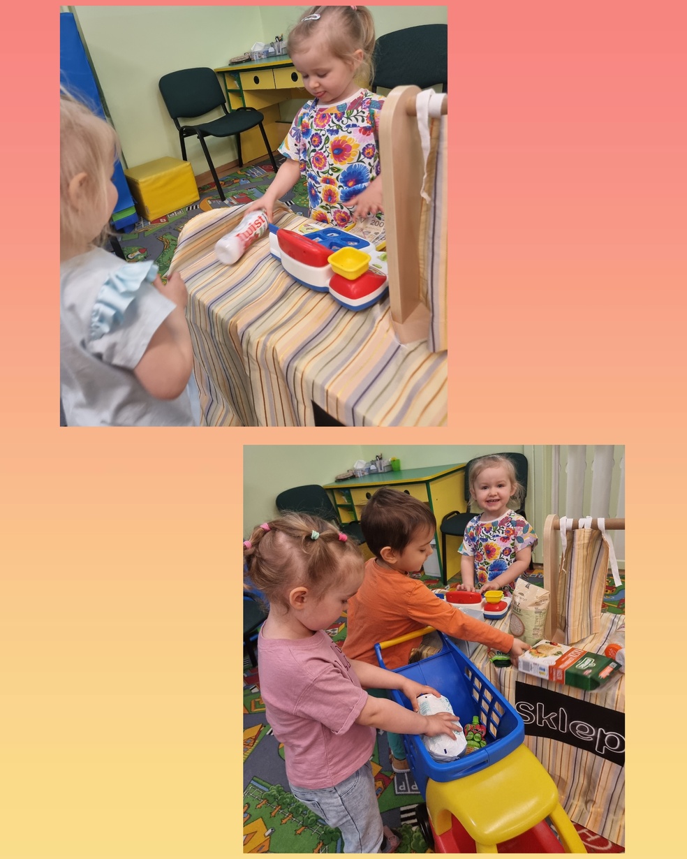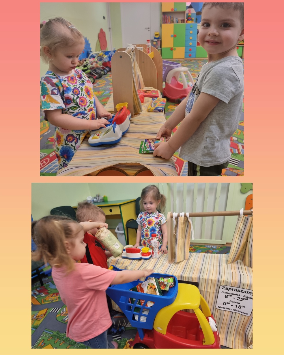 Dzieci były bardzo zaangażowane podczas dzisiejszej zabawy w " sklep ".