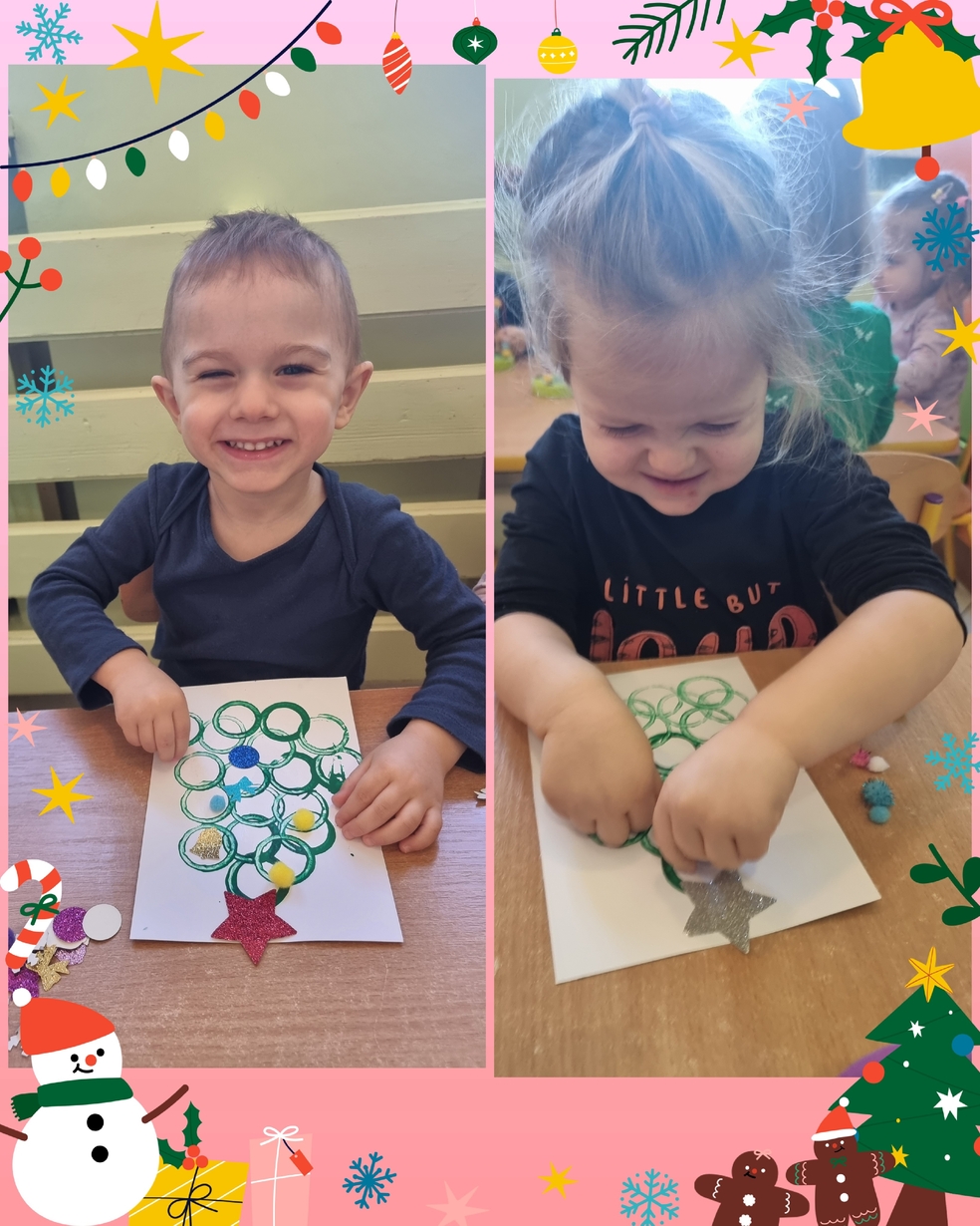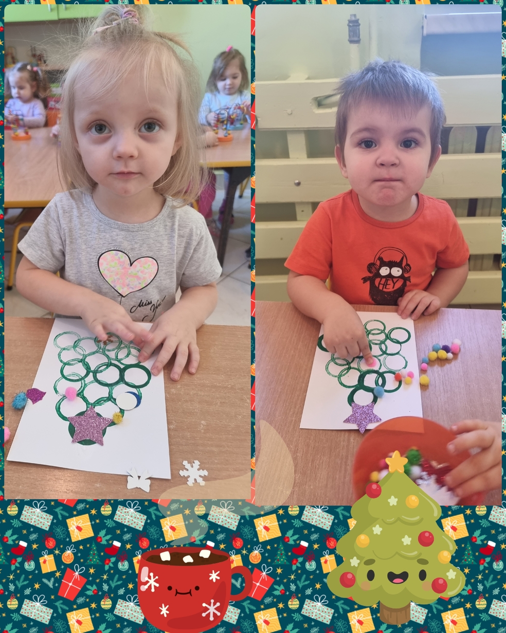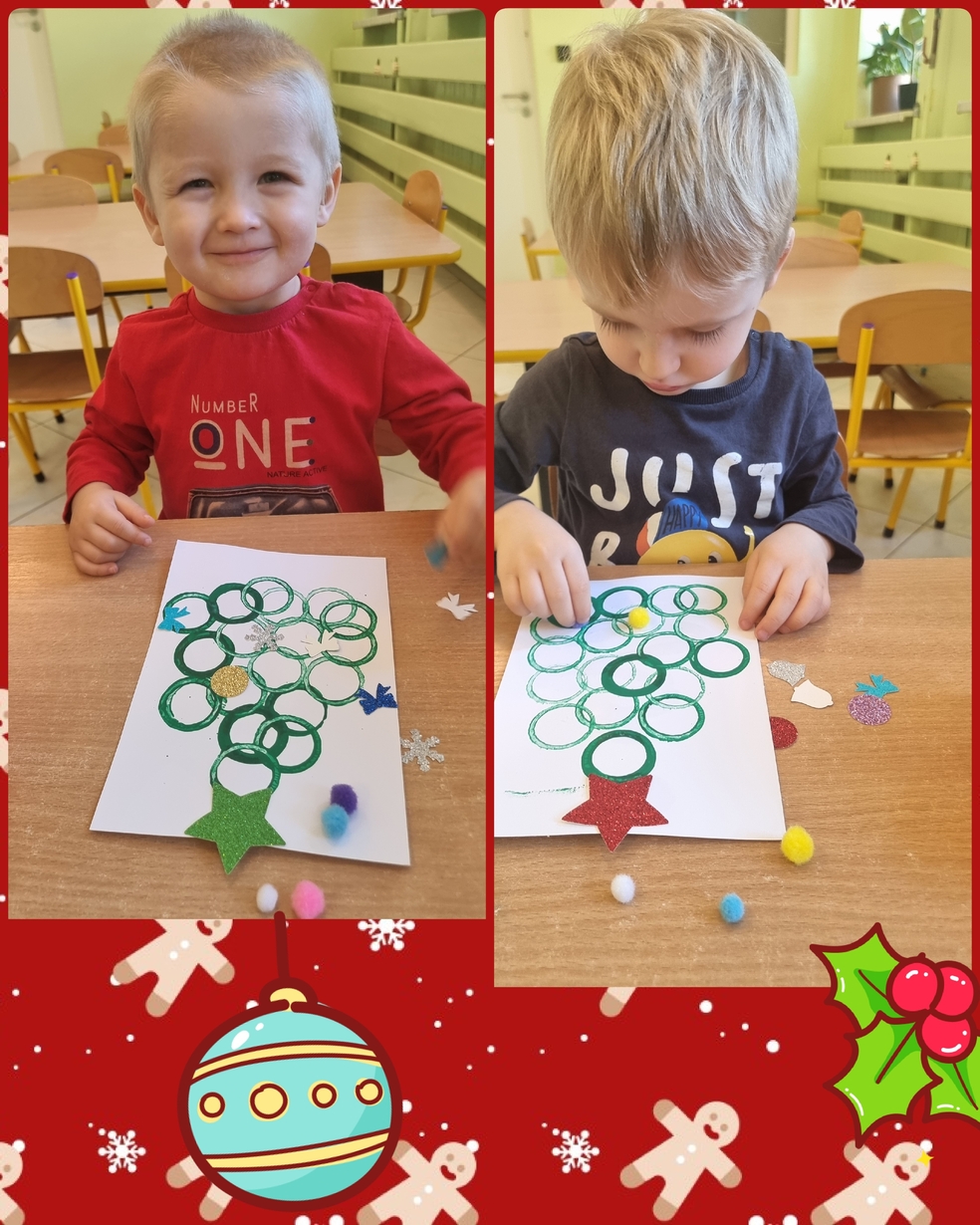 Panie opiekujace się małymi artystami przygotowały zielone choineczki, które dzieci ozdobiły w swoim własnym, niepowtarzalnym stylu.