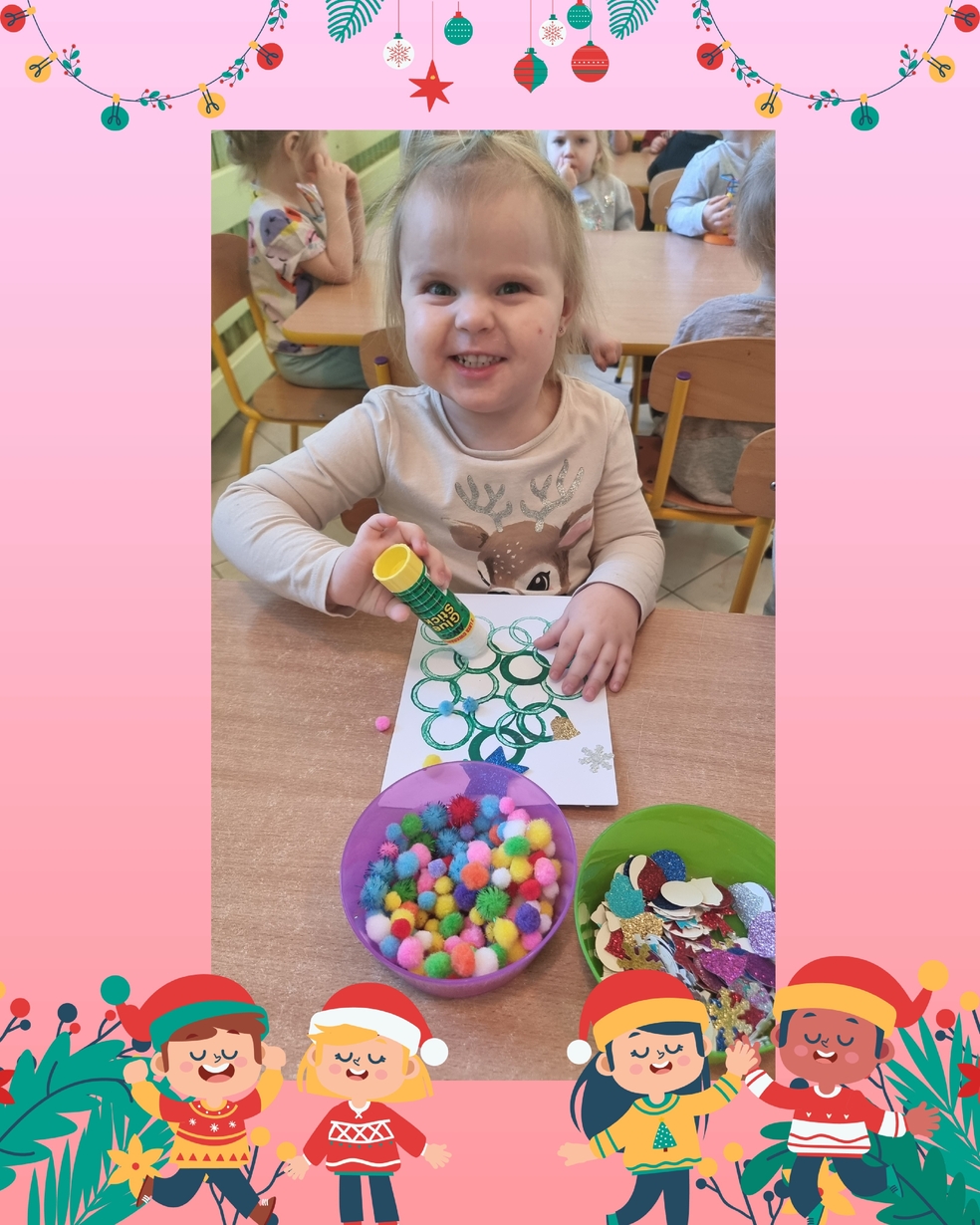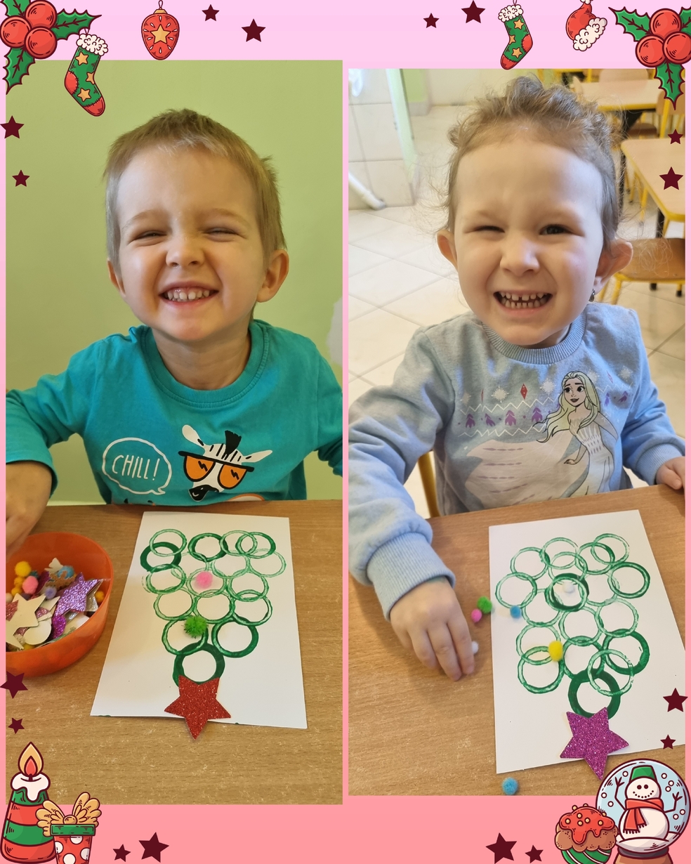 Nasze kochane Żabki Postanowiły wykazać się talentem artystycznym i stworzyć pracę plastyczą pt. "Moja choineczka".