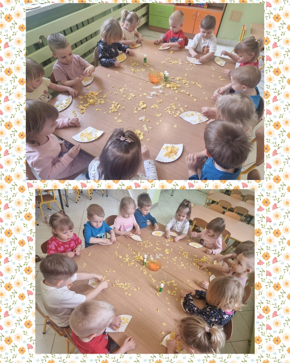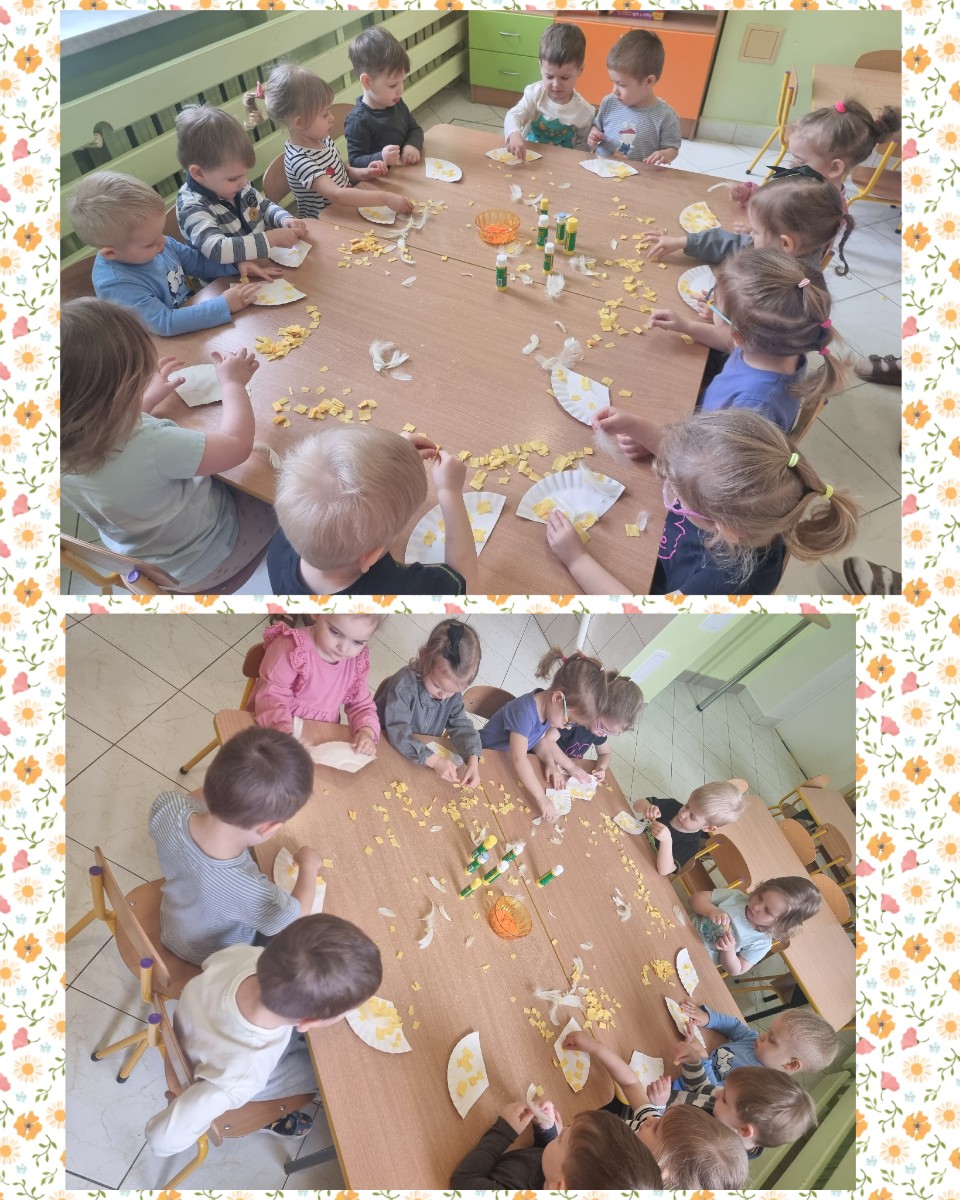 Postanowiły stworzyć przepiękne żółciutkie kurczaczki, wykorzystując do tego oczka, dzióbek, żółtą bibułę.