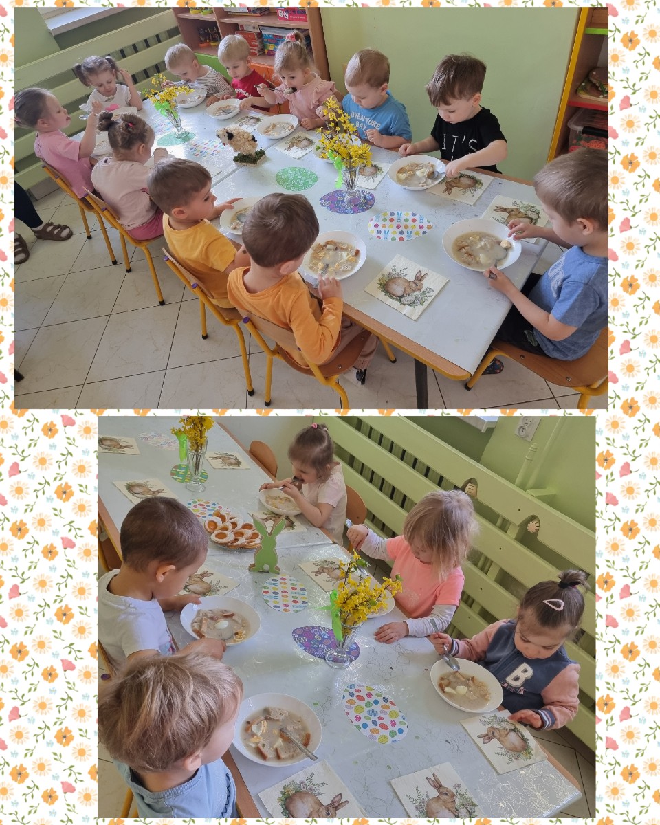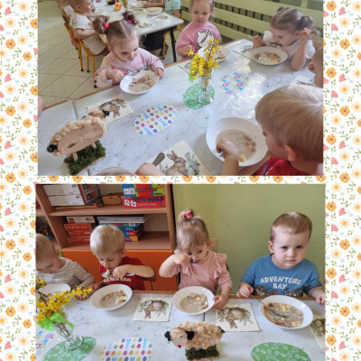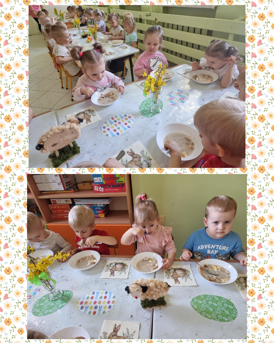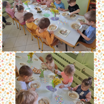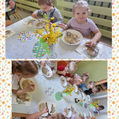 "Żłobkowa Rodzinka” zasiadła do uroczystego śniadania. Na stole znalazł się tradycyjny barszcz biały .