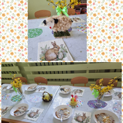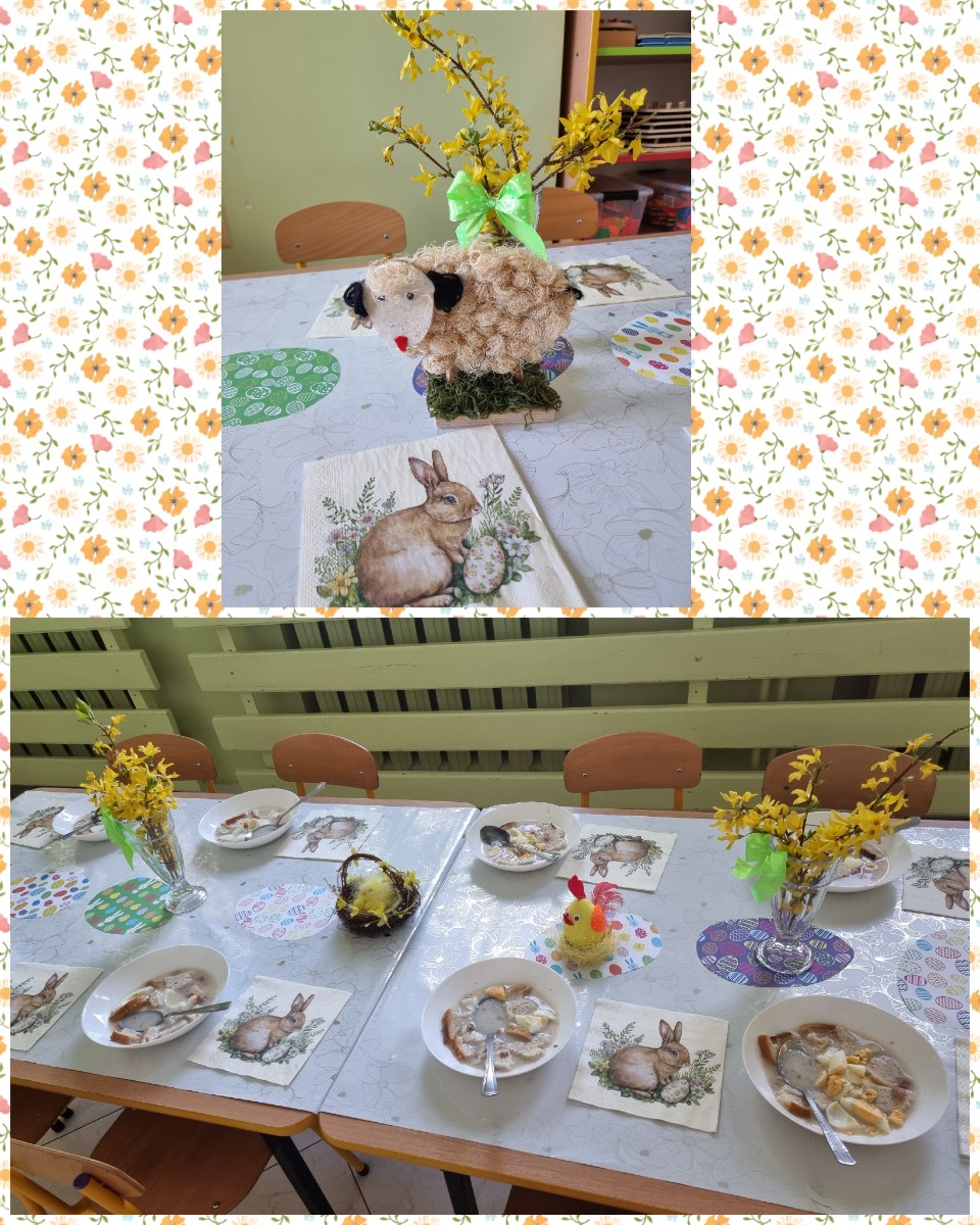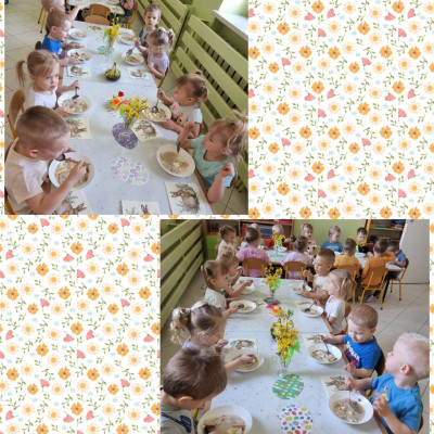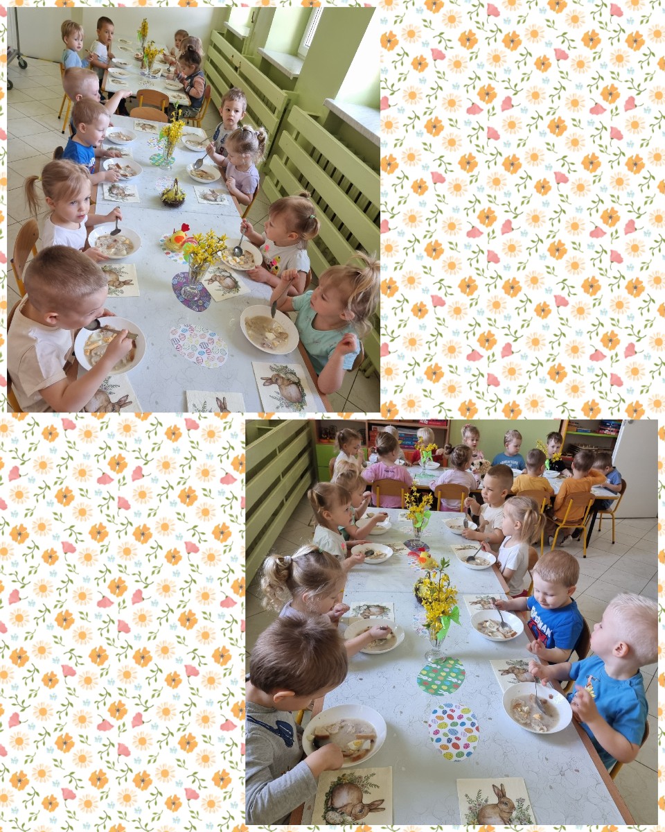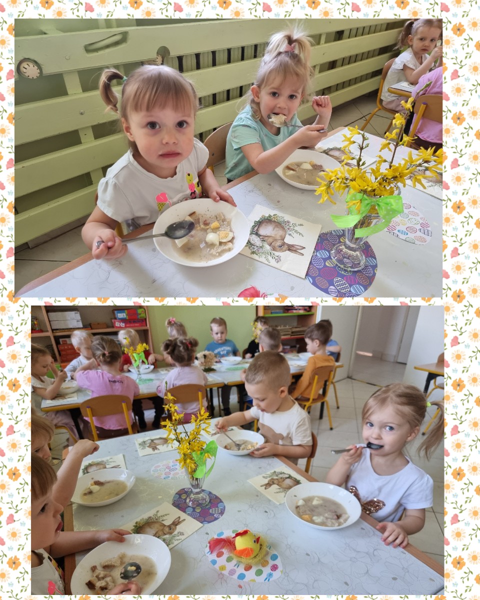 "Żłobkowa Rodzinka” zasiadła do uroczystego śniadania. Na stole znalazł się tradycyjny barszcz biały .