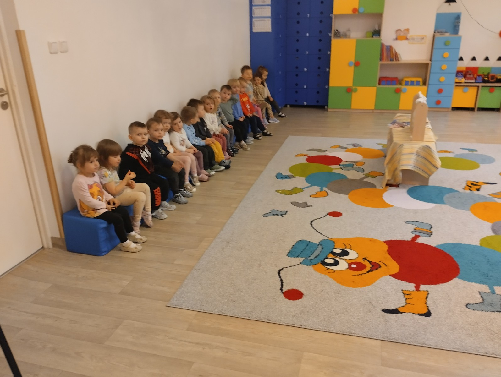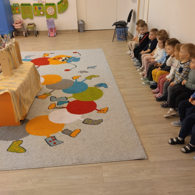 Nasze dzisiejsze przedstawienie było pełne humoru i zabawnych scenek. Spektakl wywołał uśmiech na twarzach dzieci. Wszyscy z ogromnym zainteresowaniem śledzili losy trzech małych świnek.