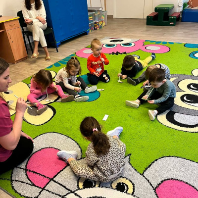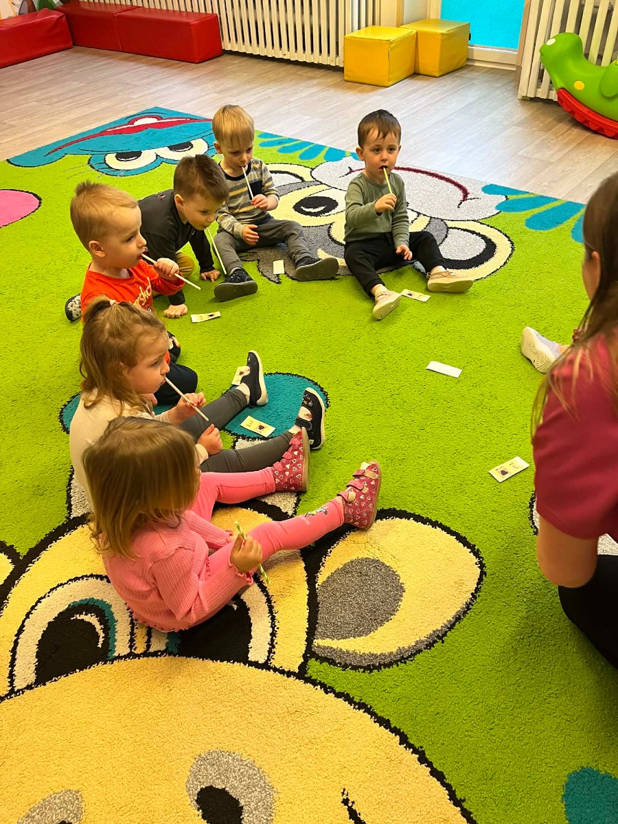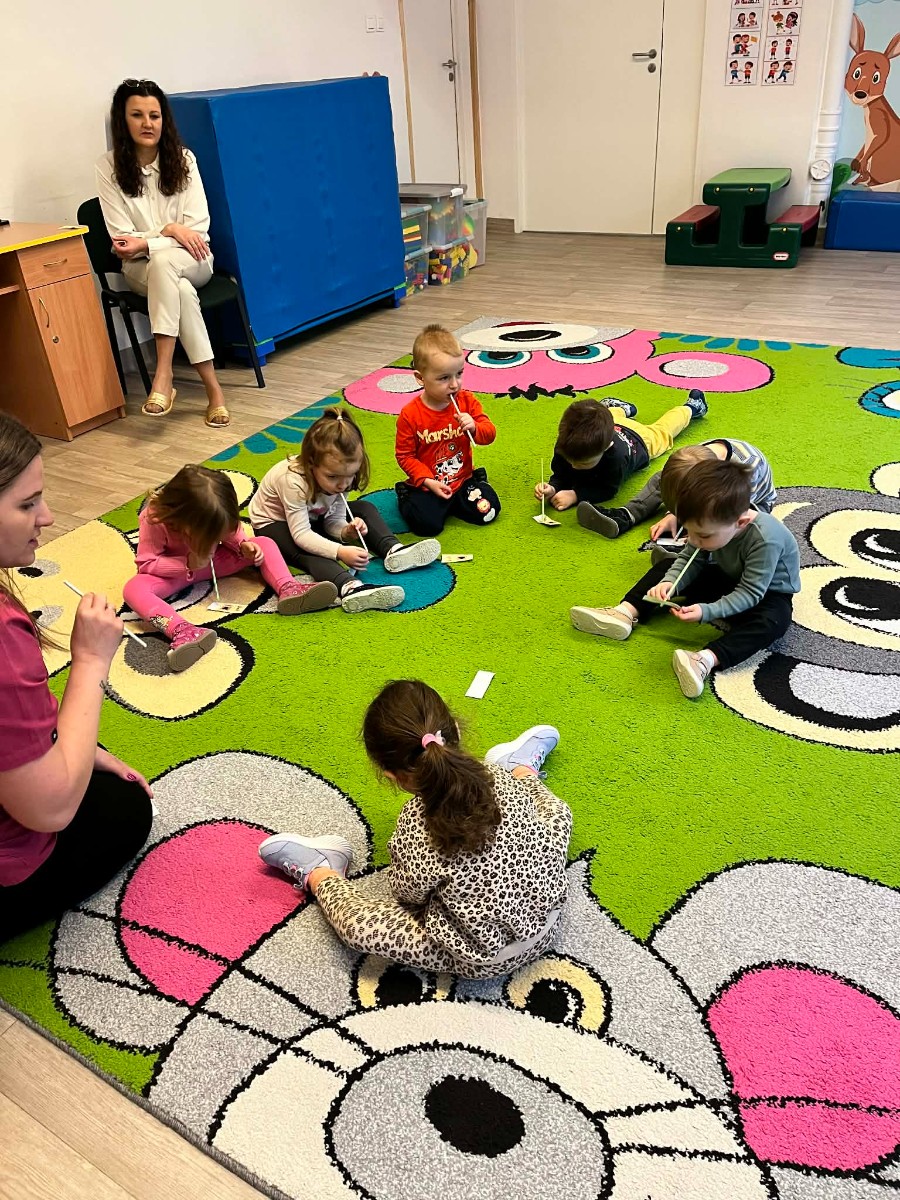 Zdjęcia przedstawiają dzieci podczas zajęć.