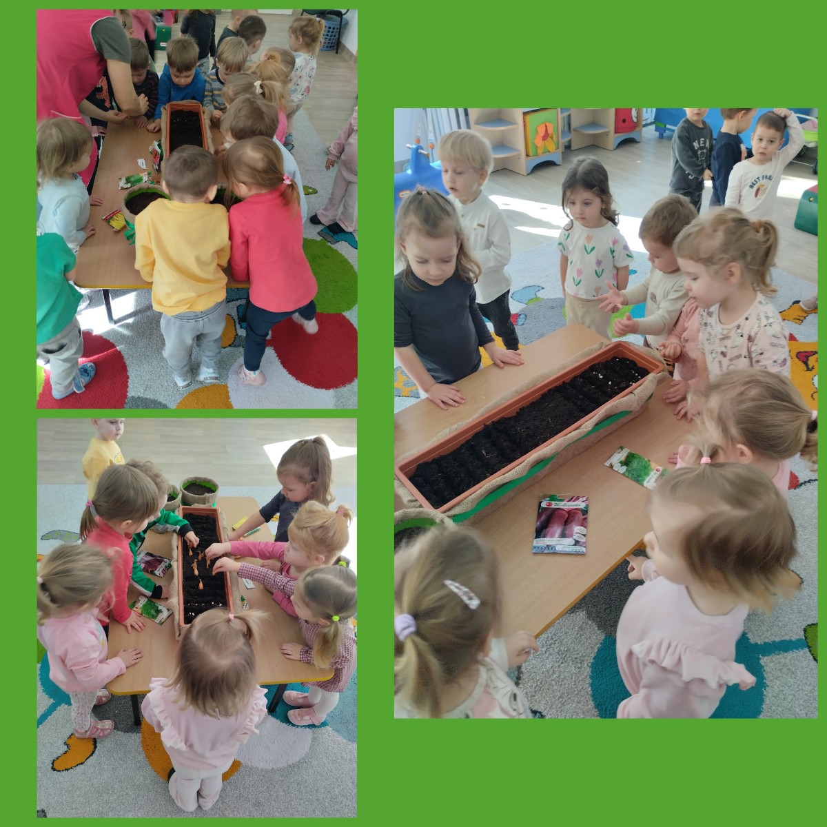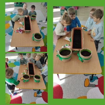 Zdjęcia przedstawiają dzieci, które tworzą ogród.