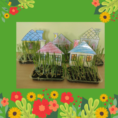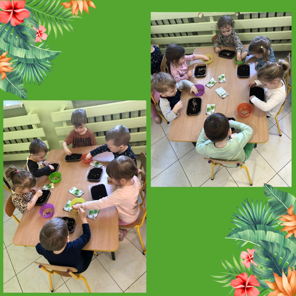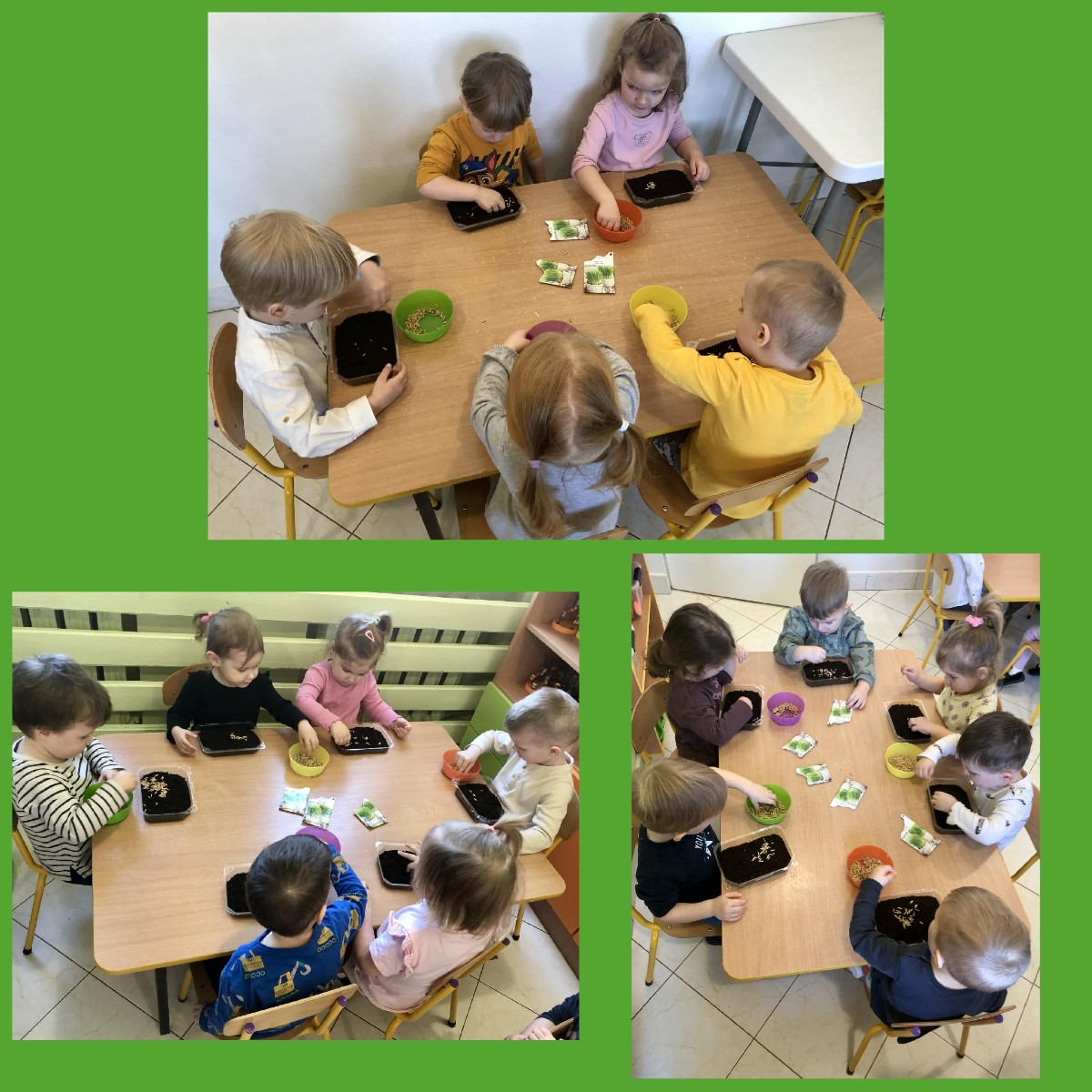 Nasze kochane żabki stworzyły swój ogród. Poznały kolejne etapy siania zboża, porównywały wygląd nasionek, a następnie samodzielnie zaśpiewały owies. Później żabki kolorowały pastelami domek. Dzieci codziennie podlewały i prowadziły obserwację. Na koniec żabki zabrały swoje ogrody do domu.