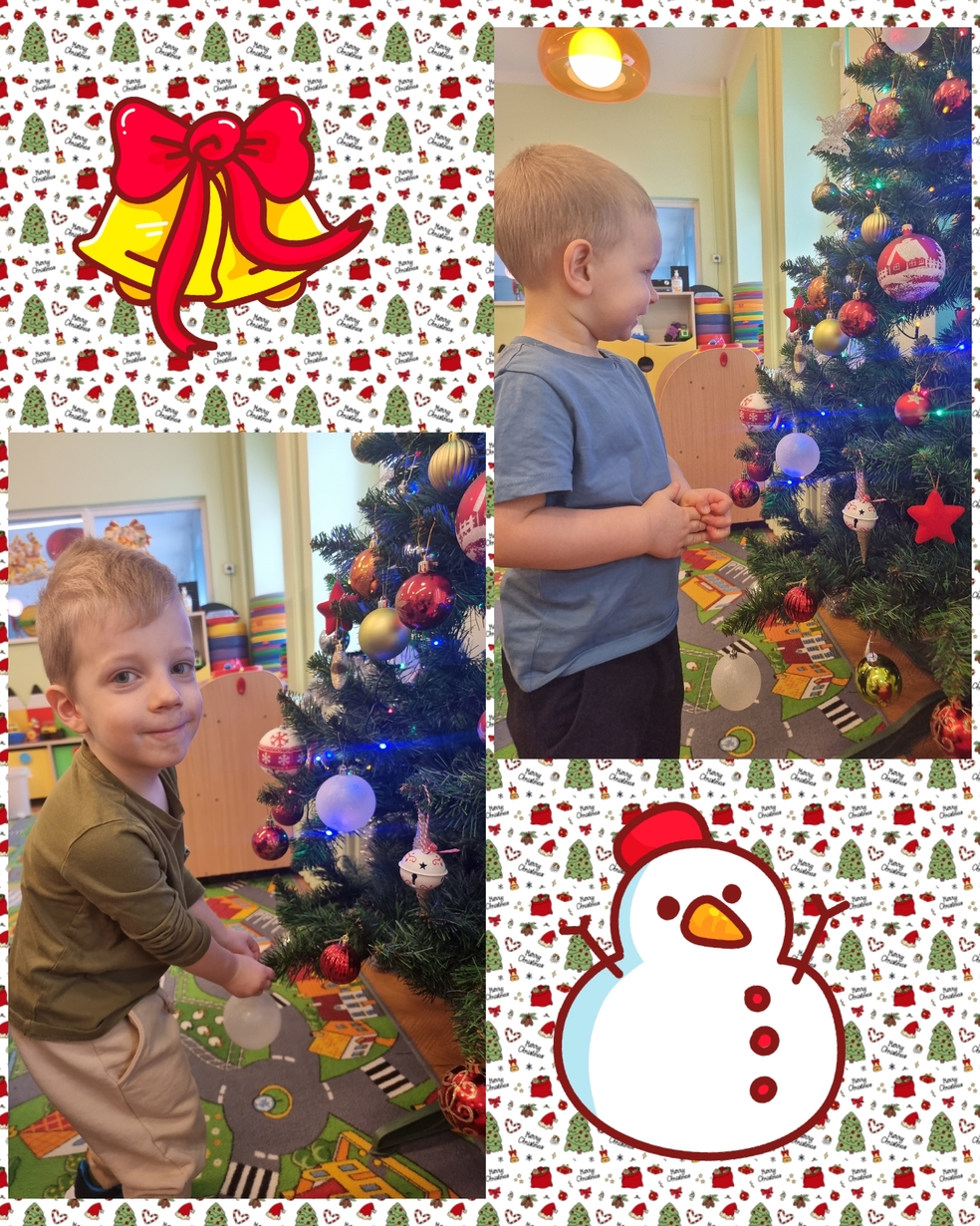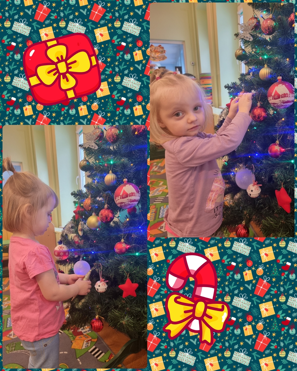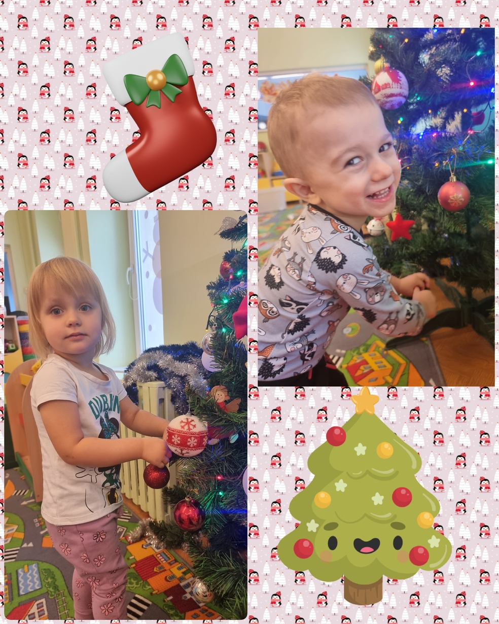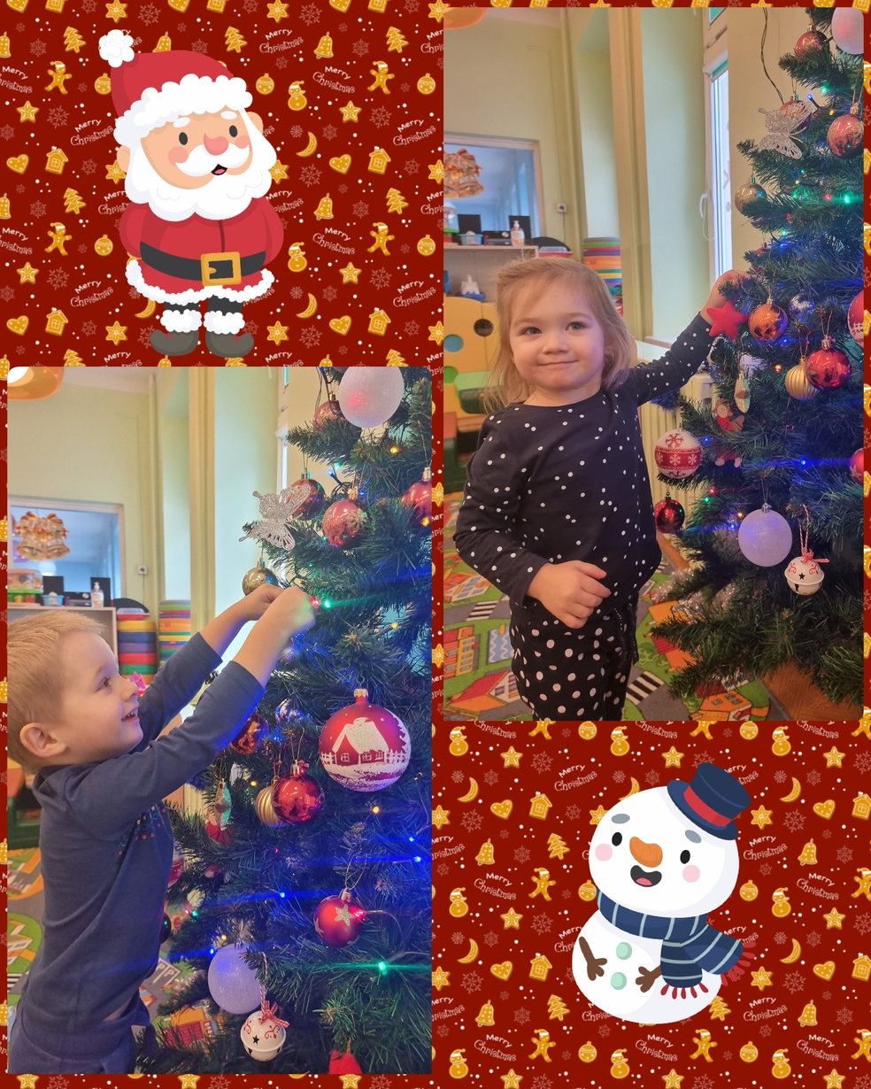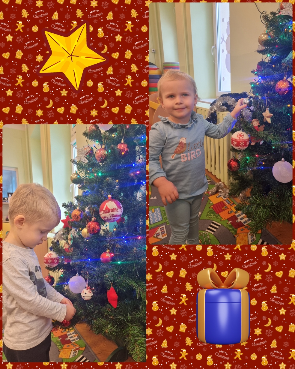 W tym roku na grupie Żabek pojawili się mali pomocnicy którzy chętnie przystroili choinkę.