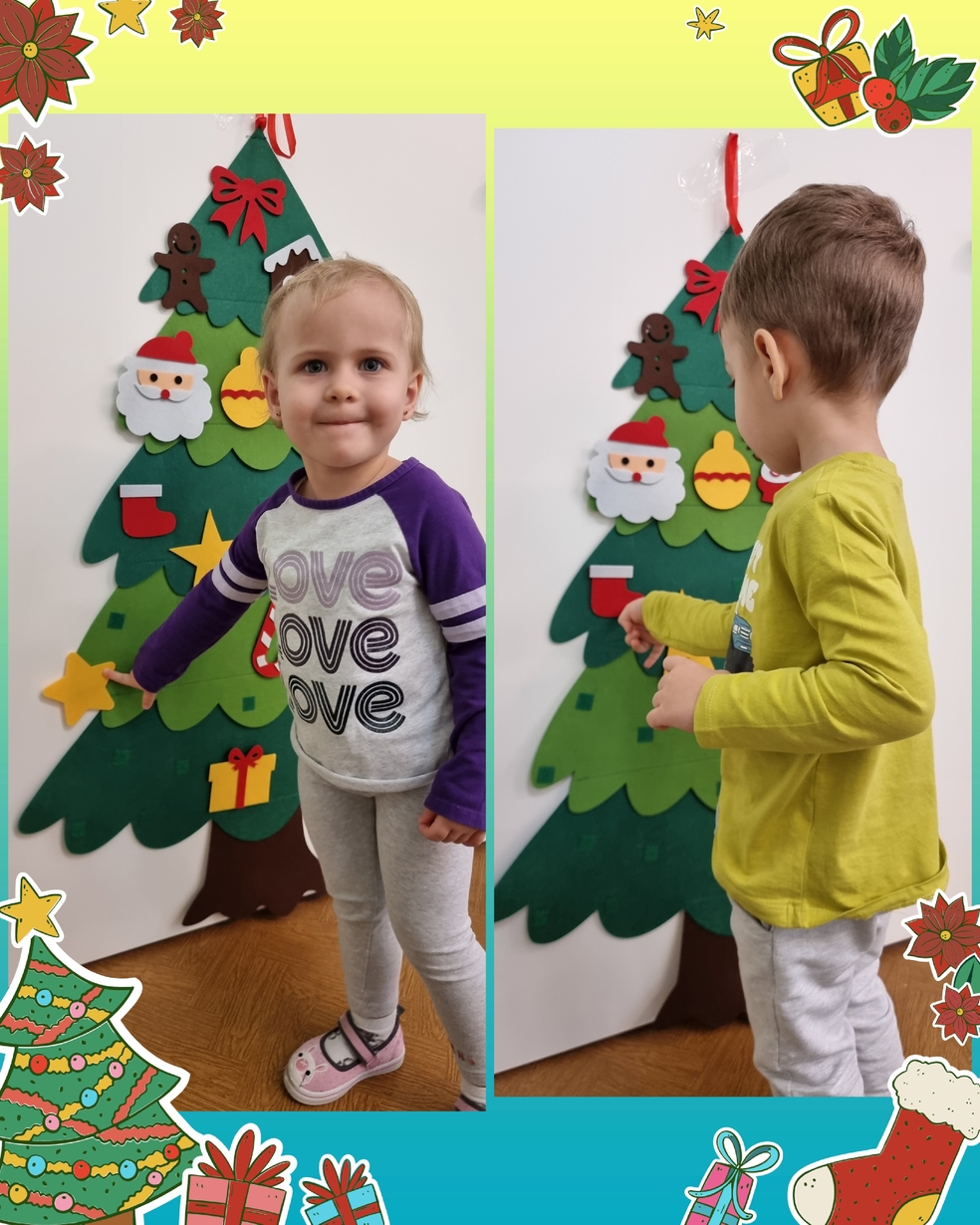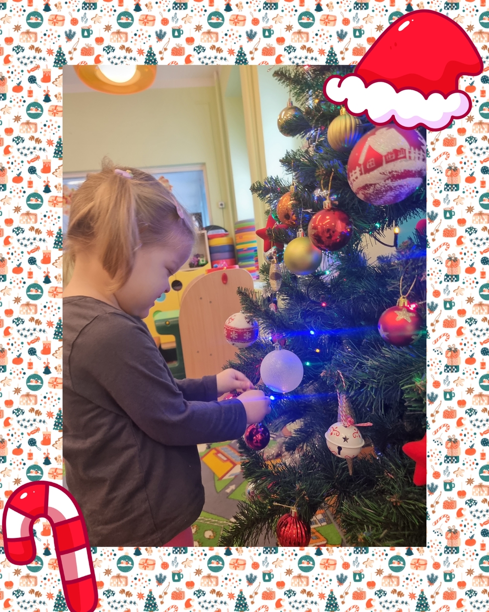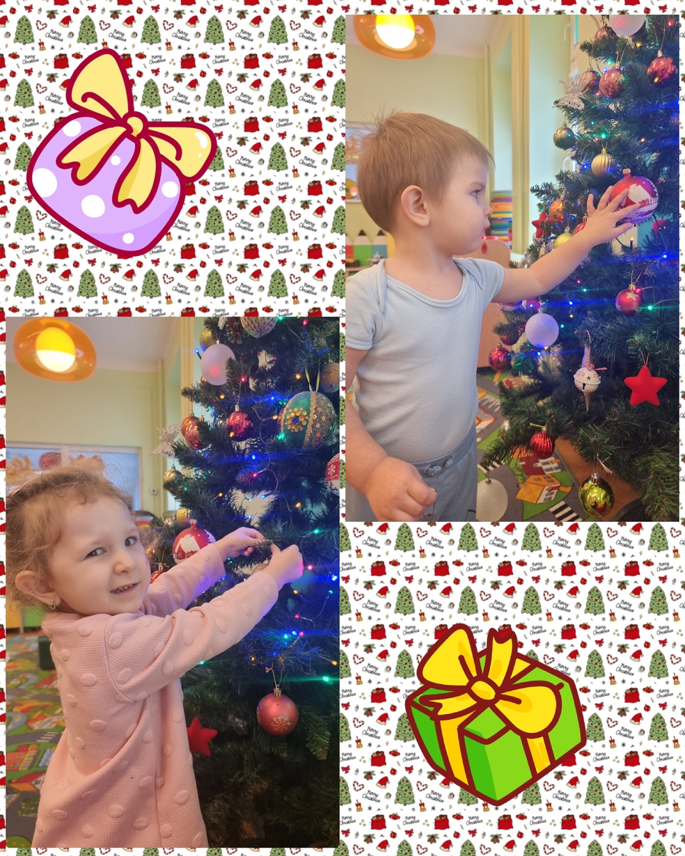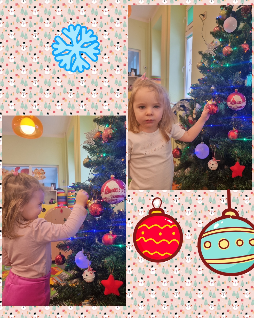 W tym roku na grupie Żabek pojawili się mali pomocnicy którzy chętnie przystroili choinkę.