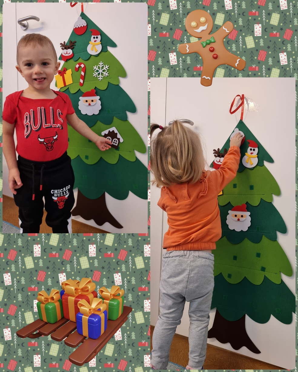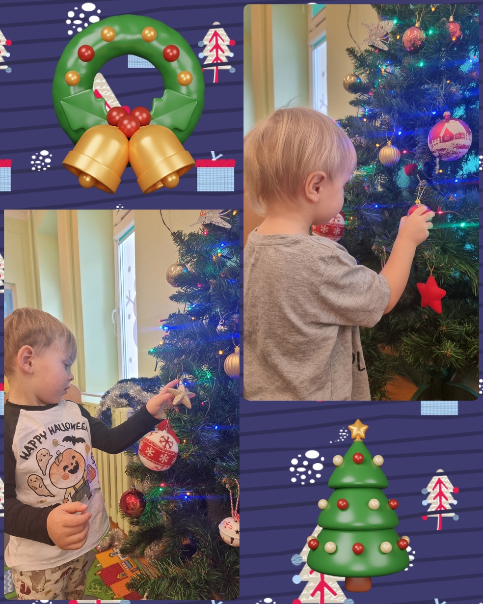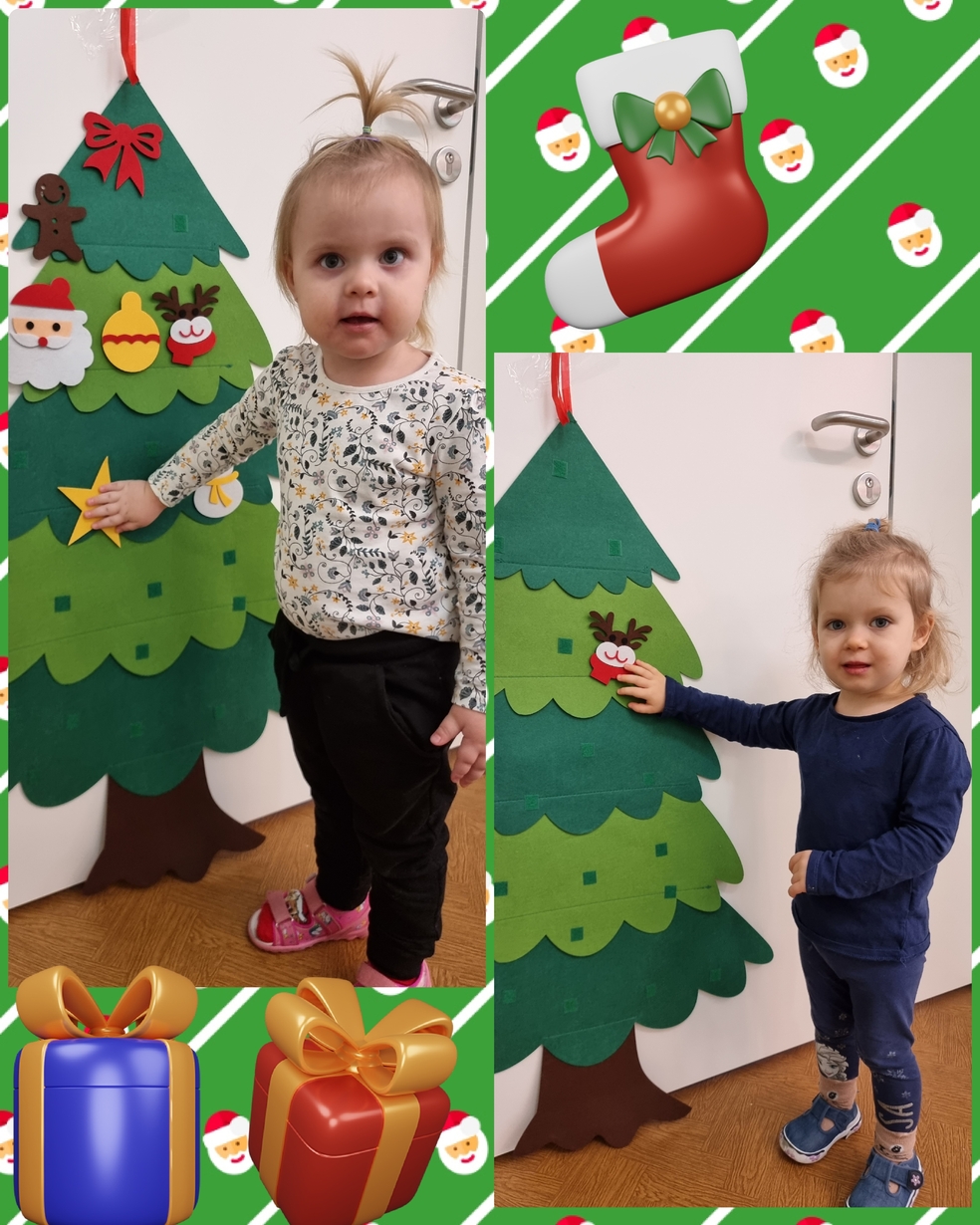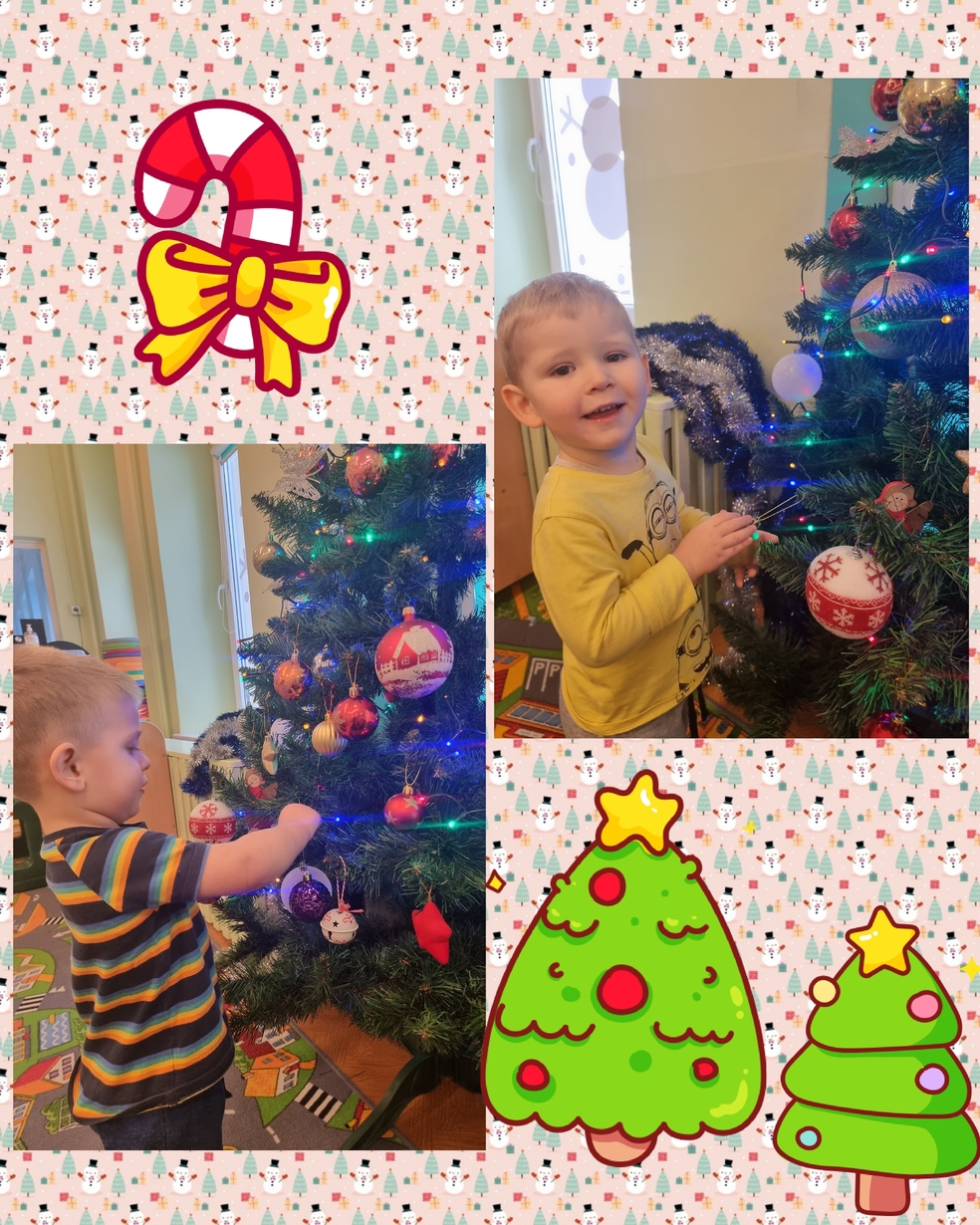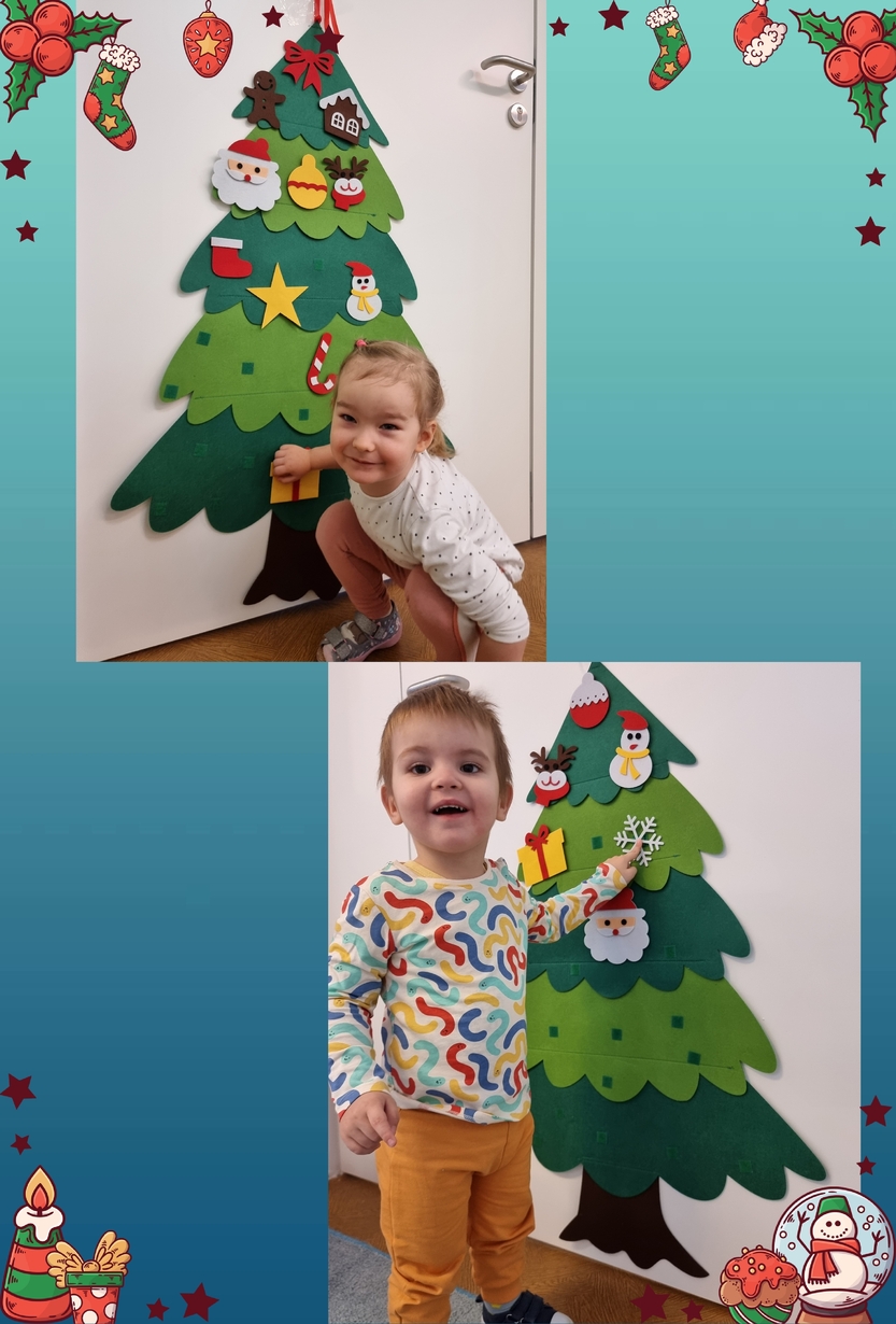 W tym roku na grupie Żabek pojawili się mali pomocnicy którzy chętnie przystroili choinkę.