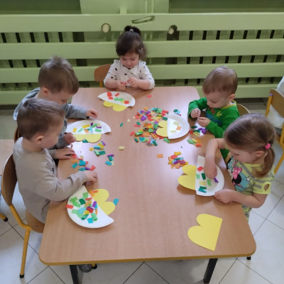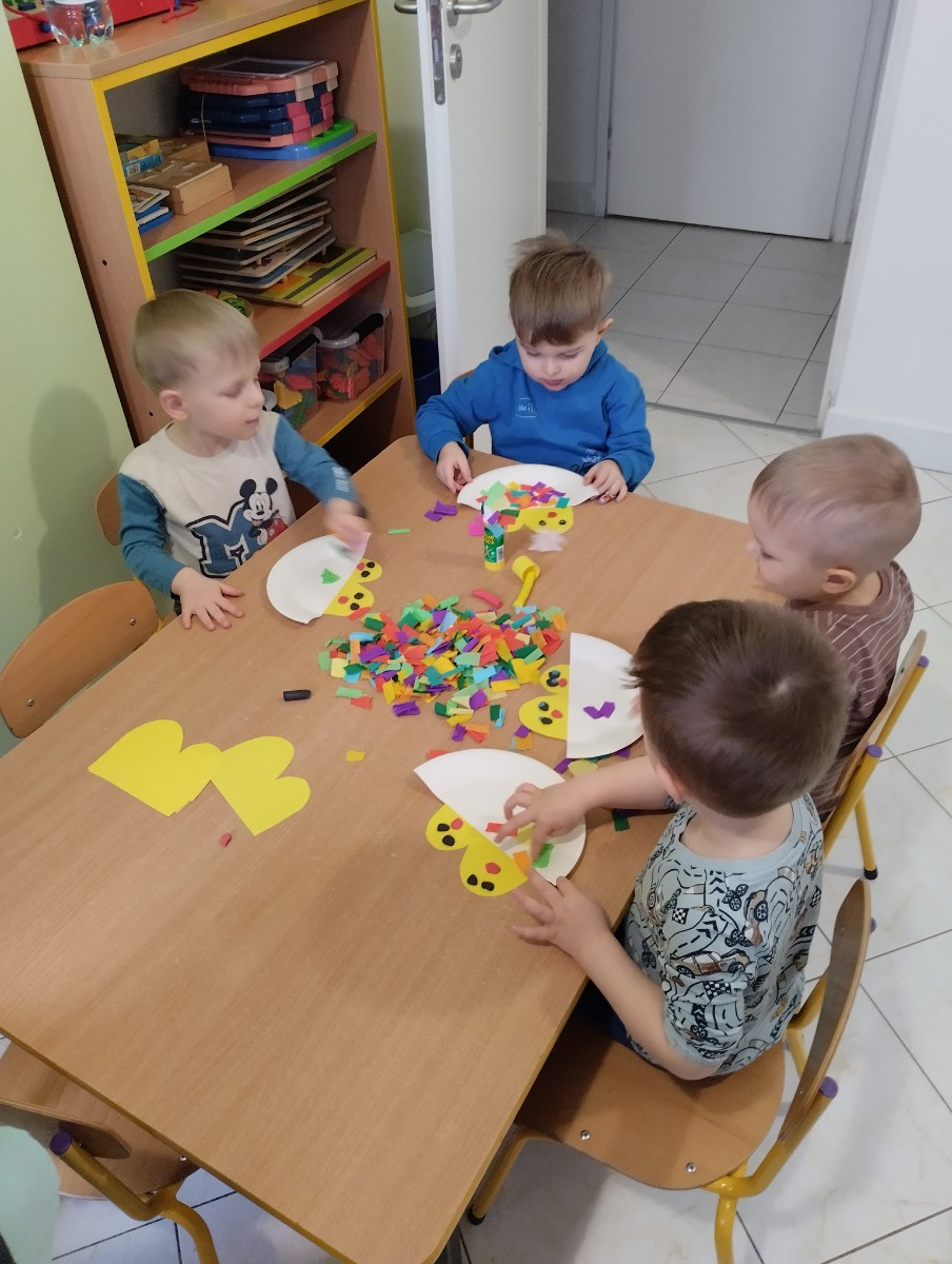 Zdj臋cia przedstawiaj膮 dzieci wykonuj膮ce prace plastyczne.