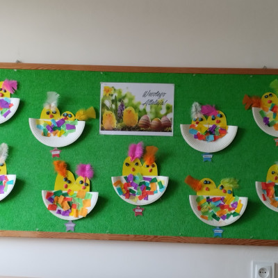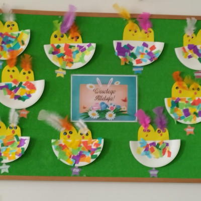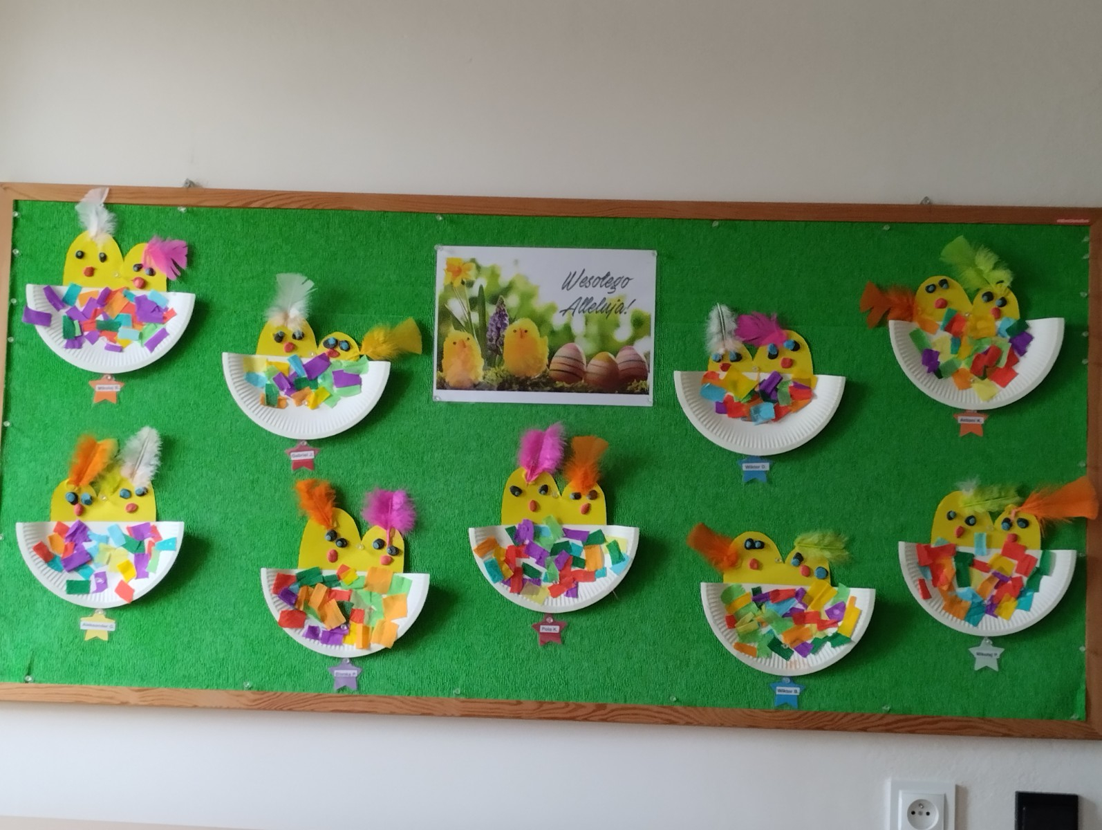 Dzieci z trzeciej grupy ju偶 wiedz膮, 偶e zbli偶aj膮 si臋 艢wi臋ta Wielkanocne. Postanowi艂y stworzy膰 pi臋kne prace nawi膮zuj膮ce do Wielkanocy. Prace przedstawiaj膮 milutkie kurczaczki w skorupce jajka.