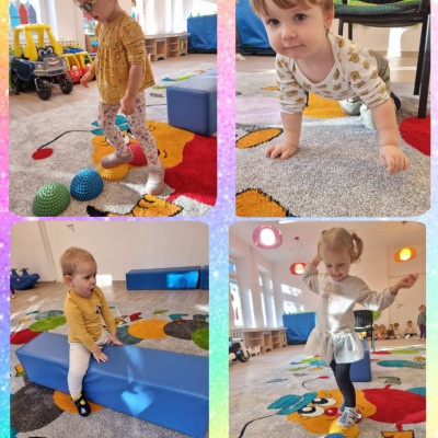 Nasi podopieczni bawią się w pięknie przygotowanych salach. poznali pierwsze zabawy w kółeczku, tor przeszkód usłyszeli pierwsze piosenki oraz wierszyki, by te początki były dla nich jak najprzyjemniejsze i najbardziej ciekawe.