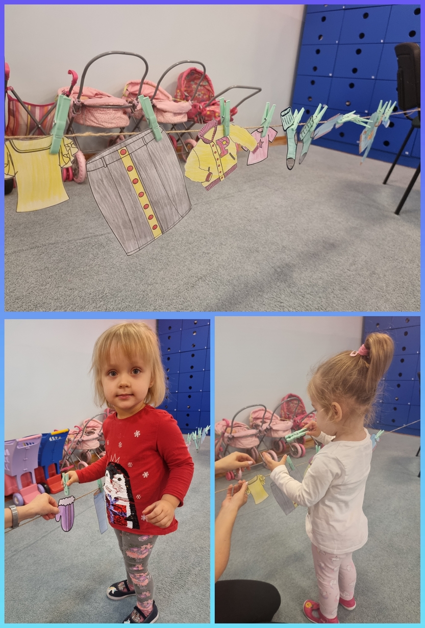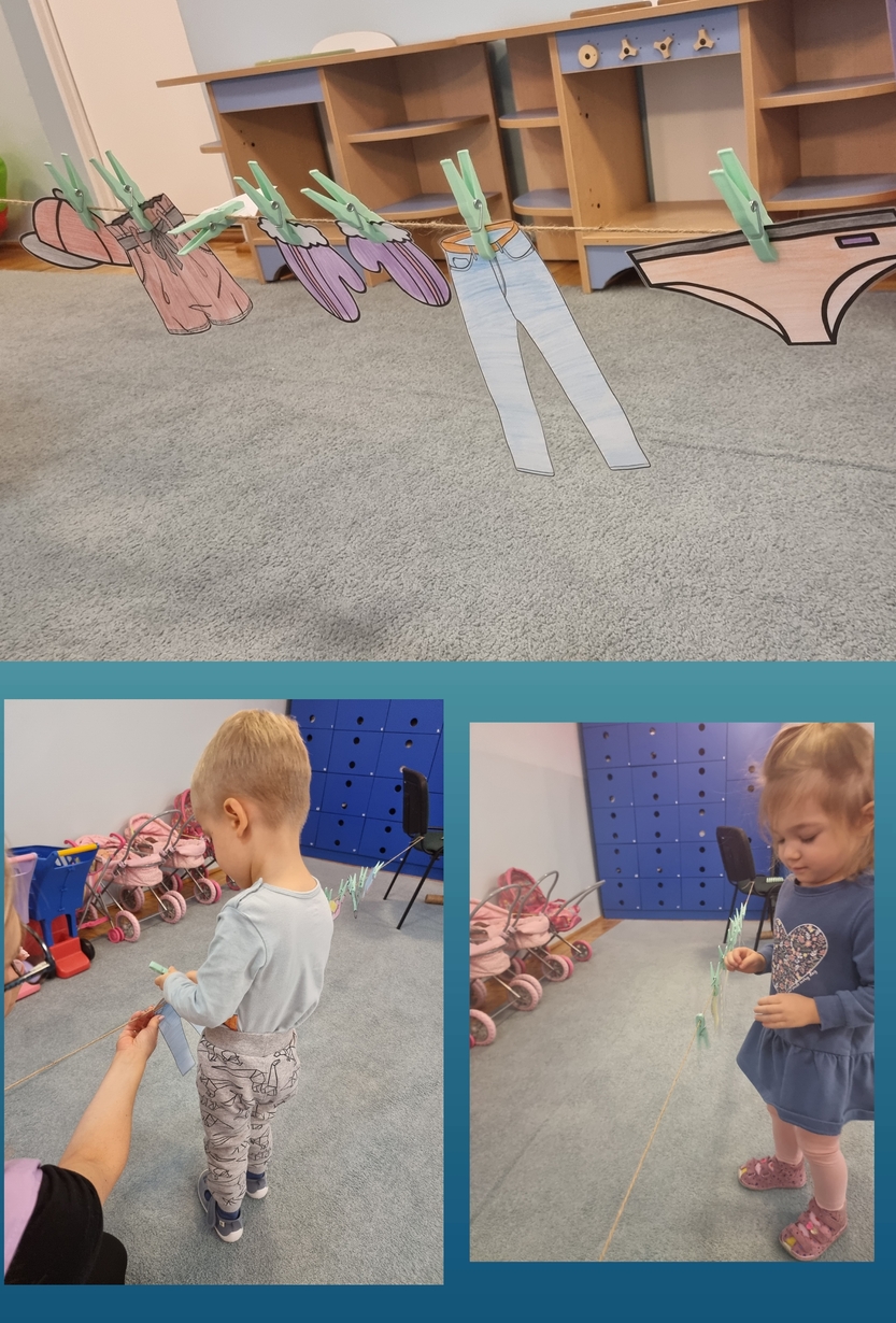 Doskonaliliśmy motorykę mała wieszając "pranie na sznurku "
