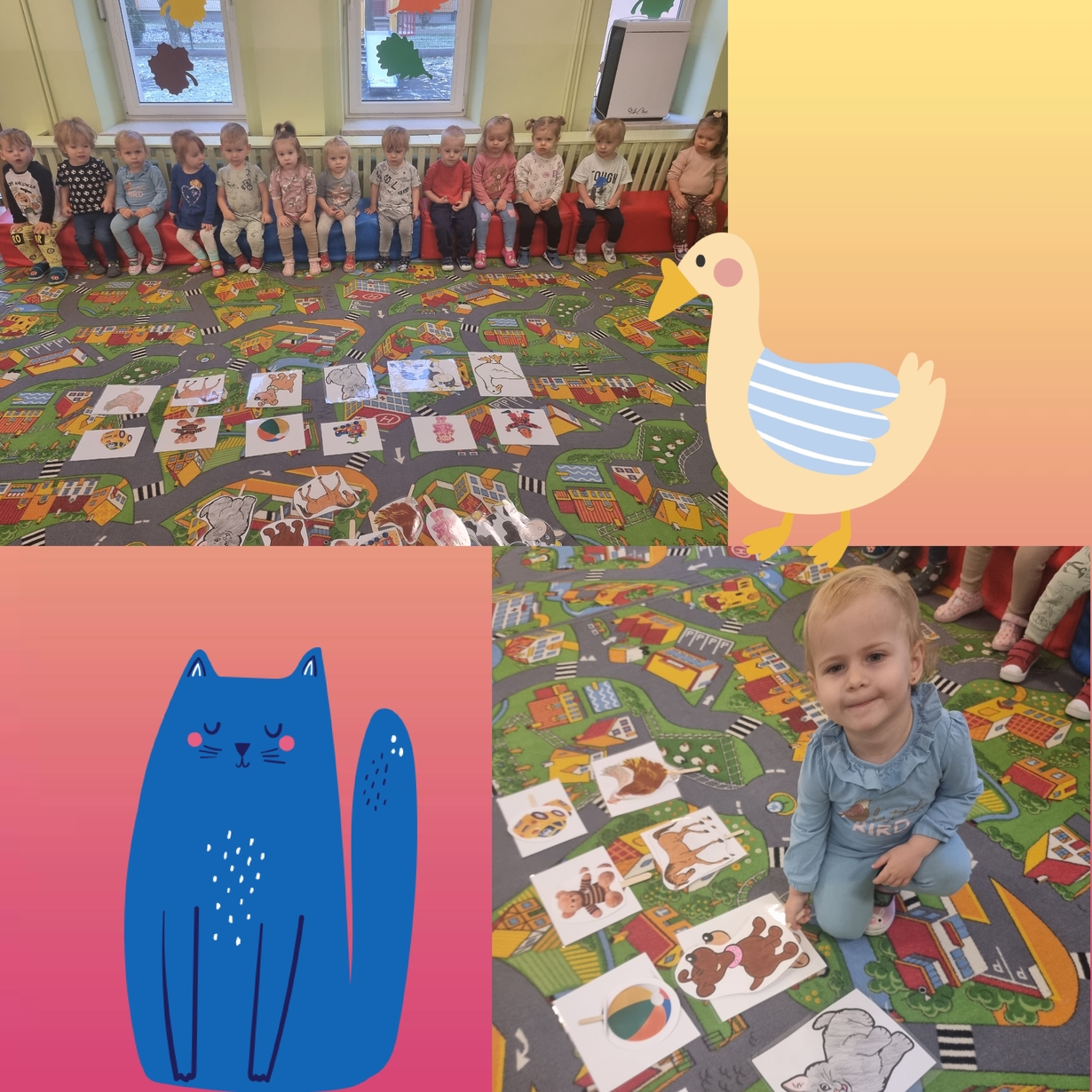 Dzieci ćwiczyły spostrzeganie wzrokowe przez dopasowywanie postaci na patyczku do obrazka .