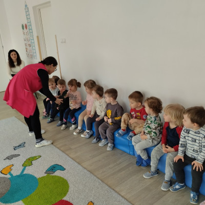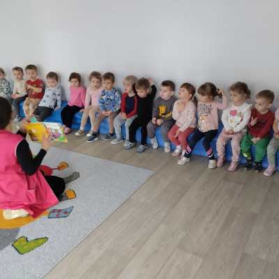 Dzieci uczestniczyły w zajęciach czytelniczych, słuchając czytanych przez opiekunkę książeczek oraz oglądając obrazki w wybranych przez siebie bajkach.