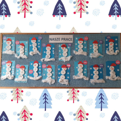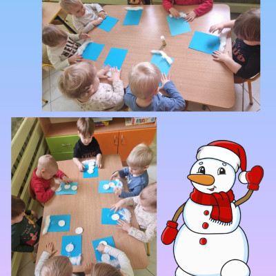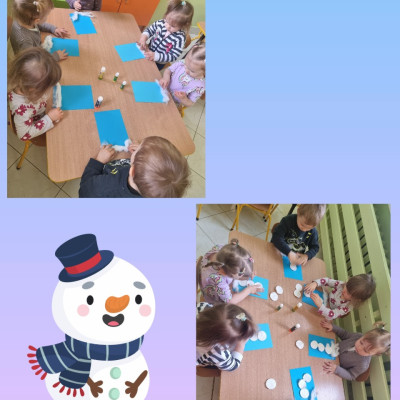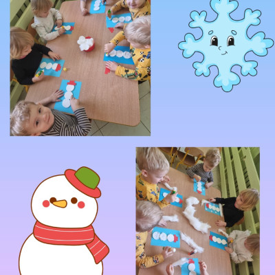 Ze względu na bardzo mroźną pogodę nasze kochane żabki postanowiły wykonać pracę plastyczną "Zimowe