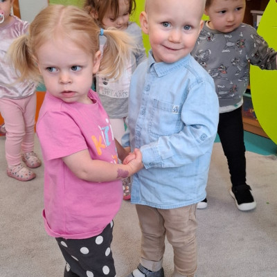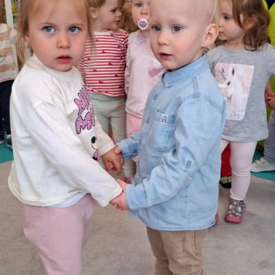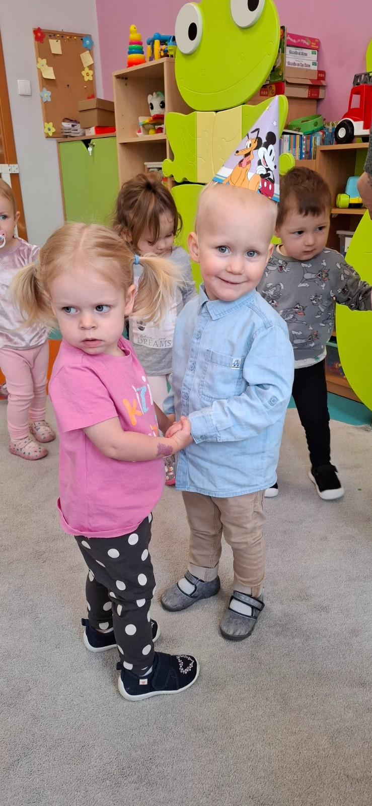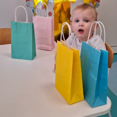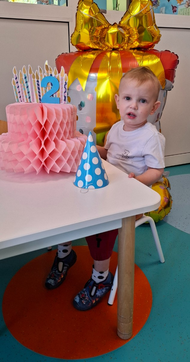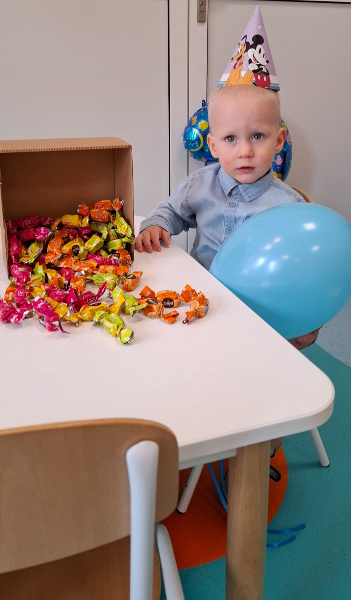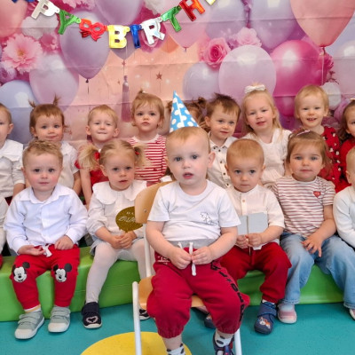 Zdjęcie przedstawia dzieci świętujące urodziny na grupie