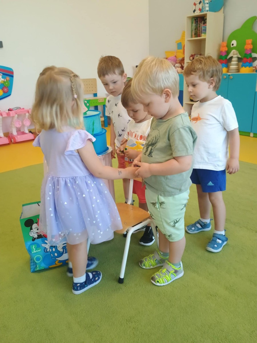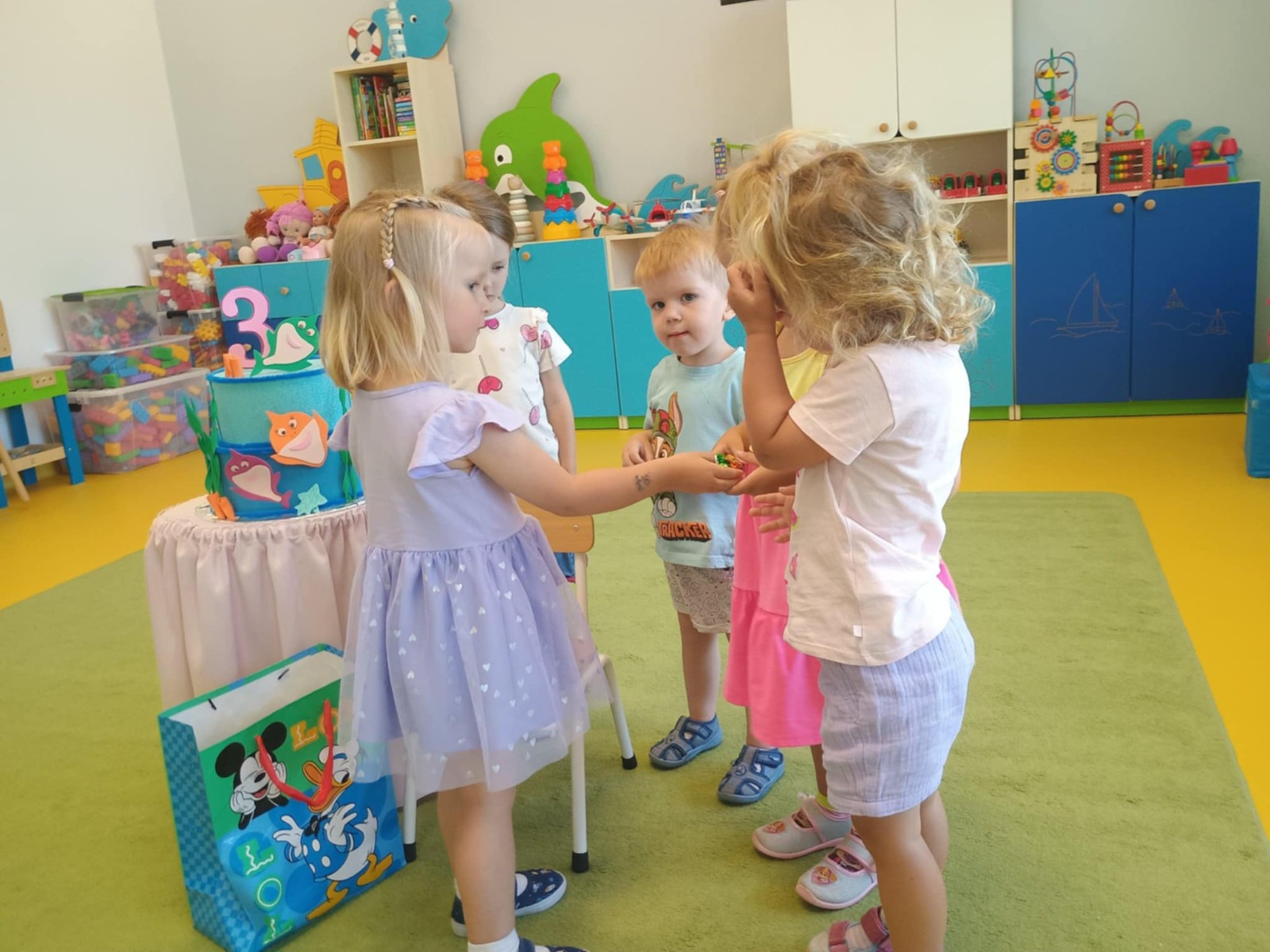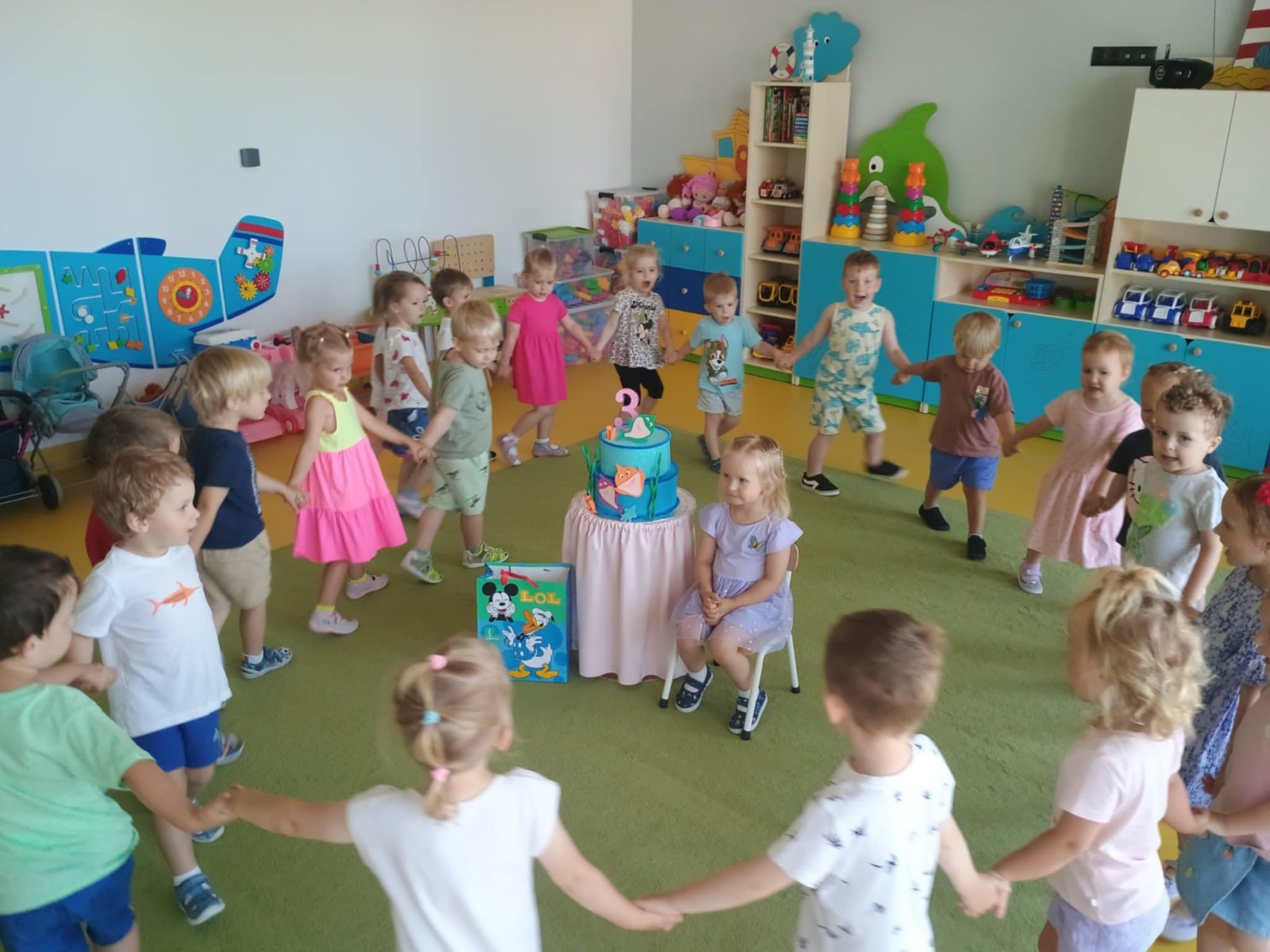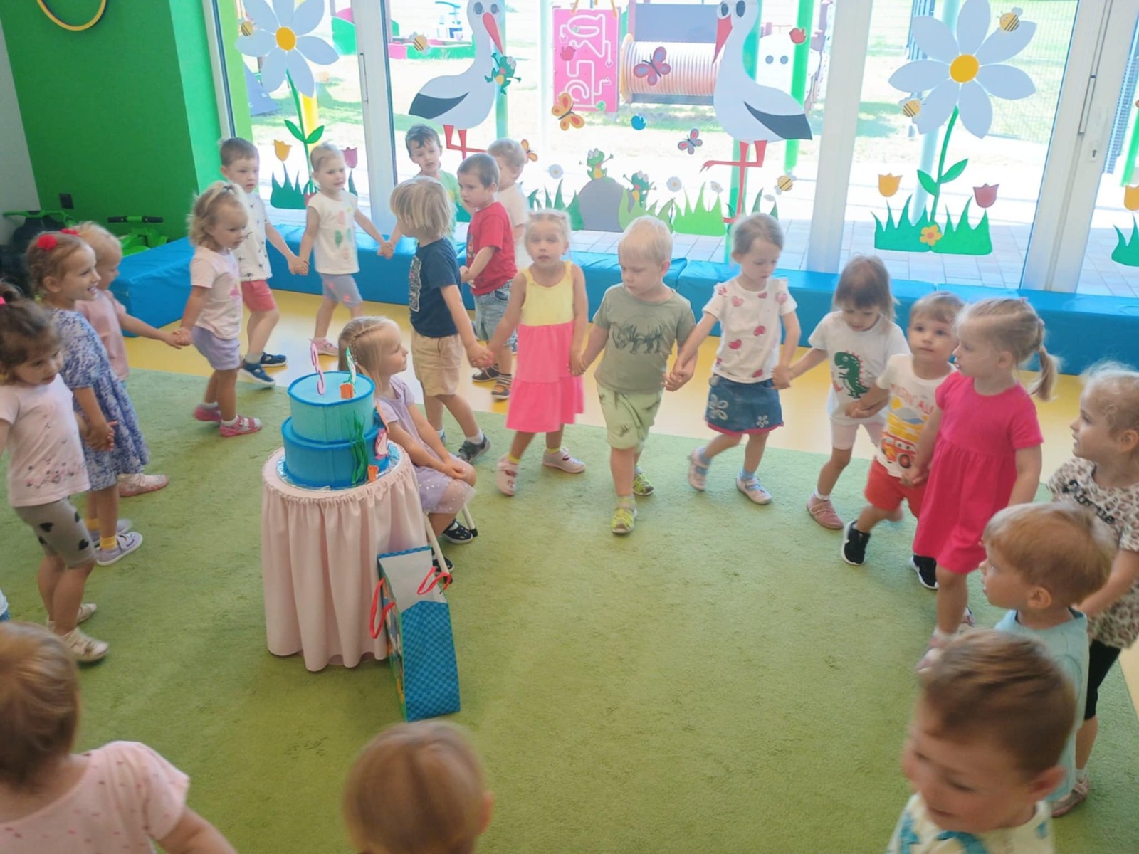 Zdjęcie przedstawia dzieci podczas zabawy urodzinowej